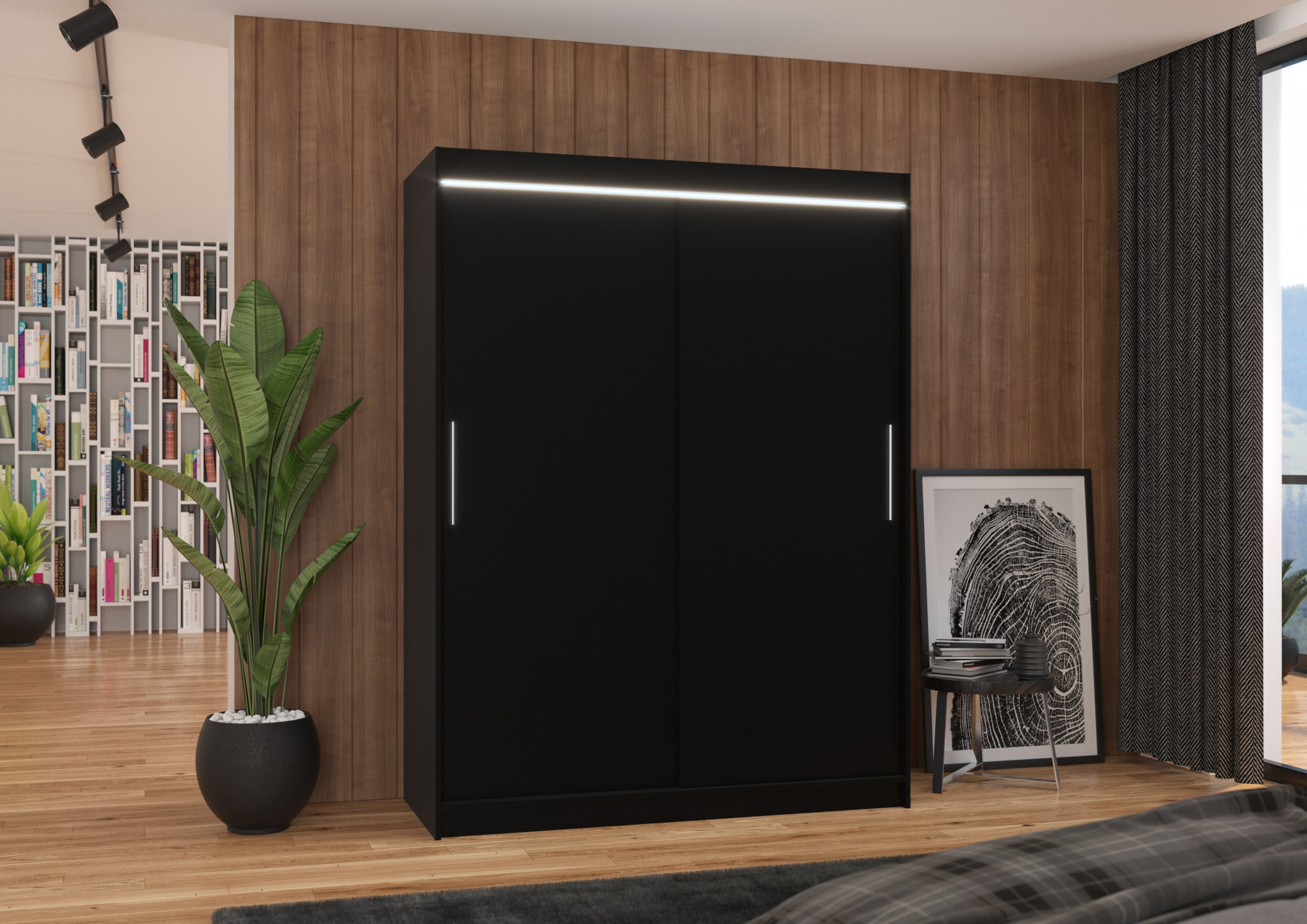 Posuvná skriňa s LED osvetlením DENVER 150 Čierna+Čierna