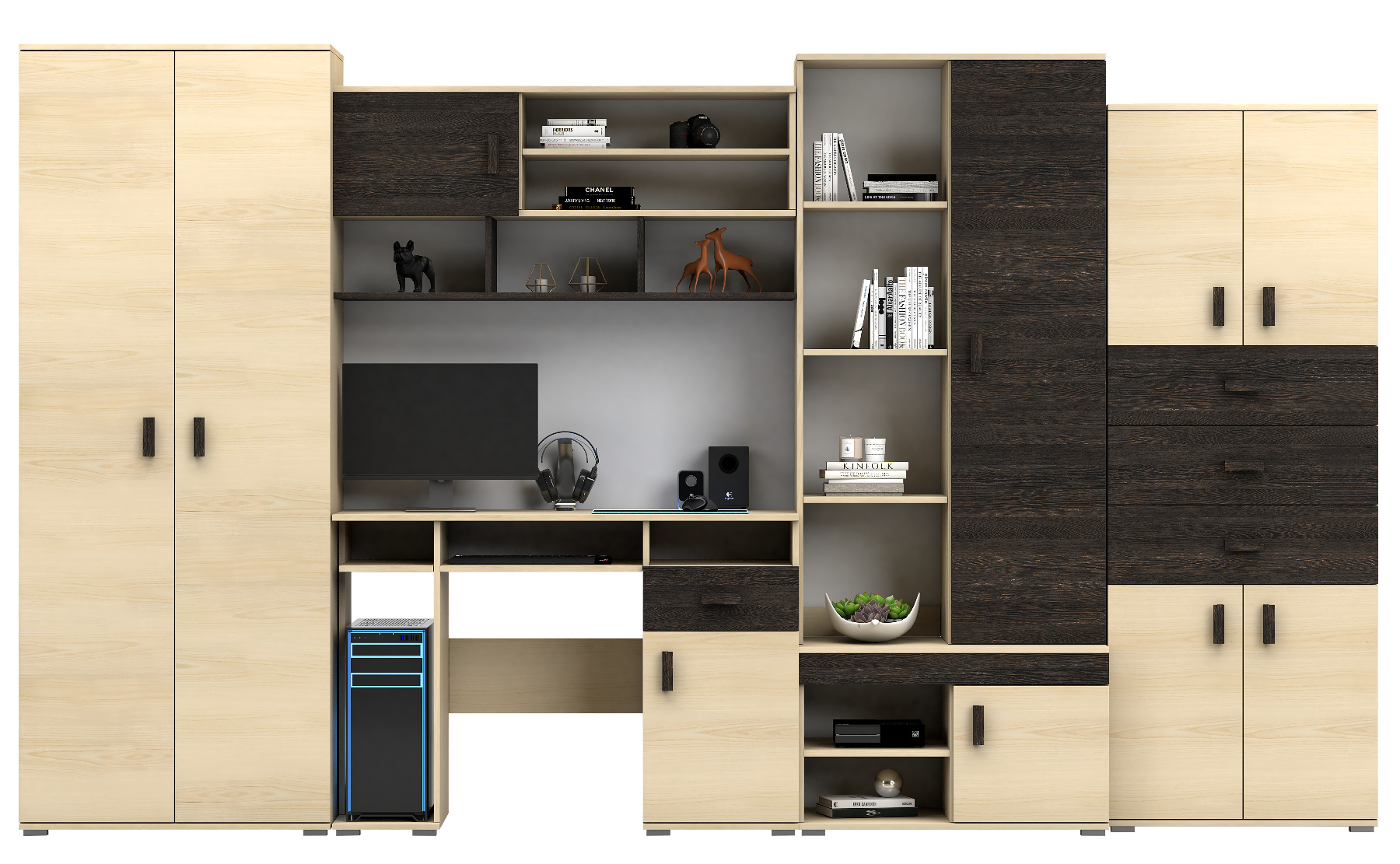 Súprava nábytku Nelly poskytuje dostatok úložného priestoru a otvorená knižnica zvýrazní dekorácie na nej umiestnené a dodá izbičke jedinečný charakter.