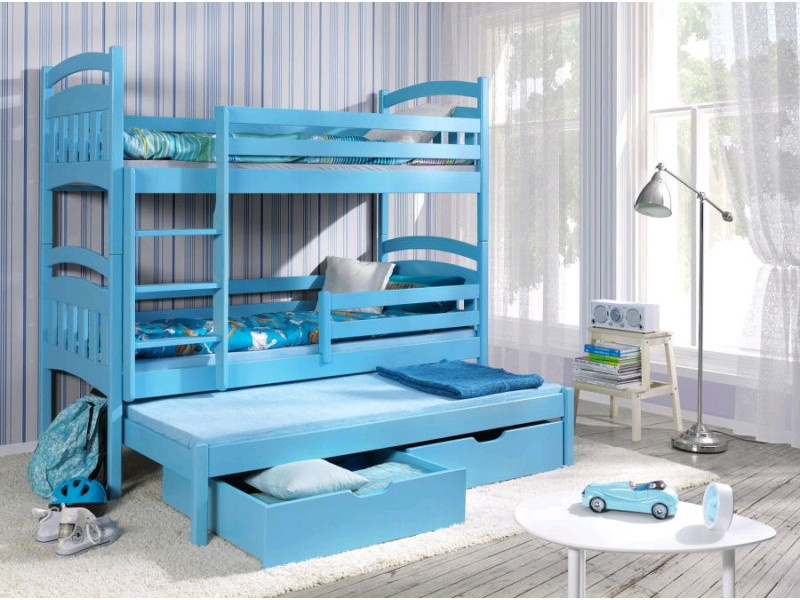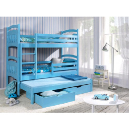 Detská poschodová posteľ JAKUB III pre 3 deti je vyrobená z kvalitného masívneho borovicového dreva. Súčasťou postele sú aj matrace. Cena postele je uvedená v prírodnom prevedení. Za farebné prevedenie je príplatok 330.- € Posteľ je možné vyrobiť na zákazku aj v Vami požadovanom rozmere za príplatok, ktorý Vám oznámime podľa Vášho požiadavku.