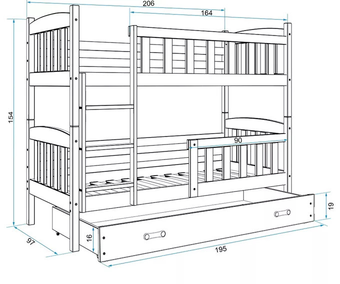 Detská poschodová posteľ KUBUS 90x200 cm, bez matraca, Prírodná