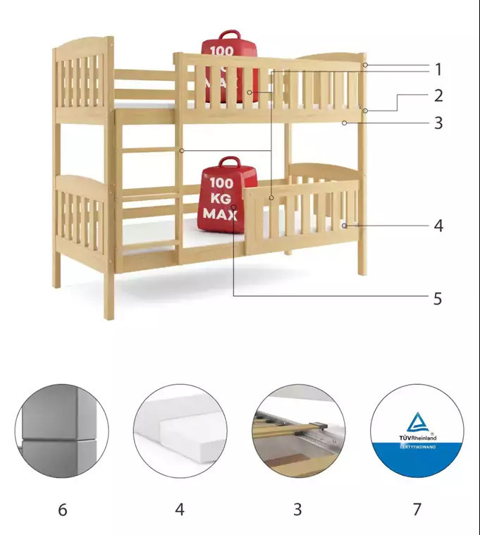 - Certifikovaná posteľ - kvalita a bezpečnosť podľa noriem TUV.
