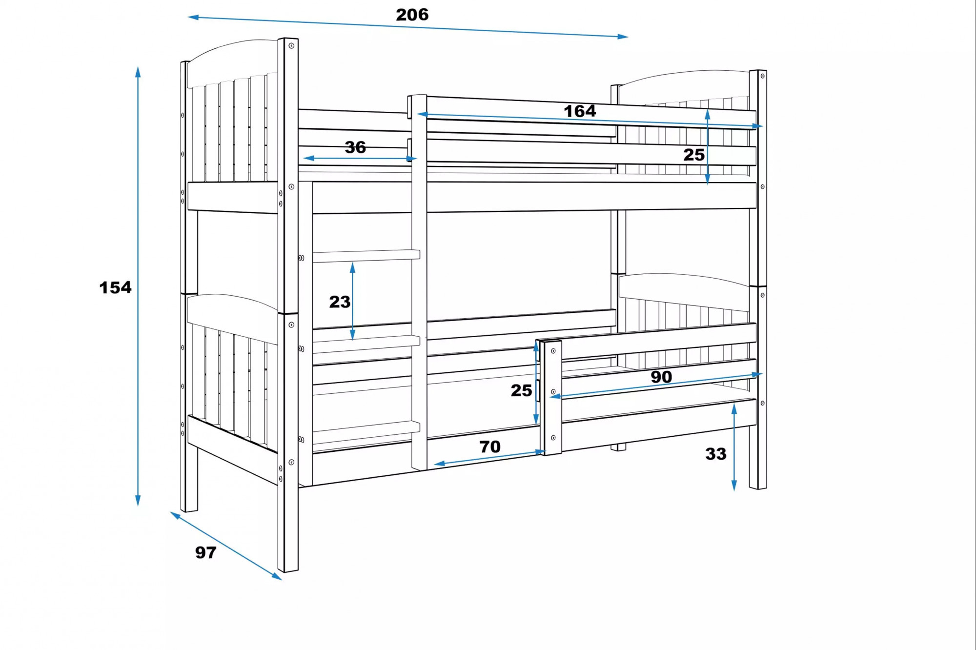 Detská poschodová posteľ KUBUS 90x200 cm, vrátane matracov, Prírodná