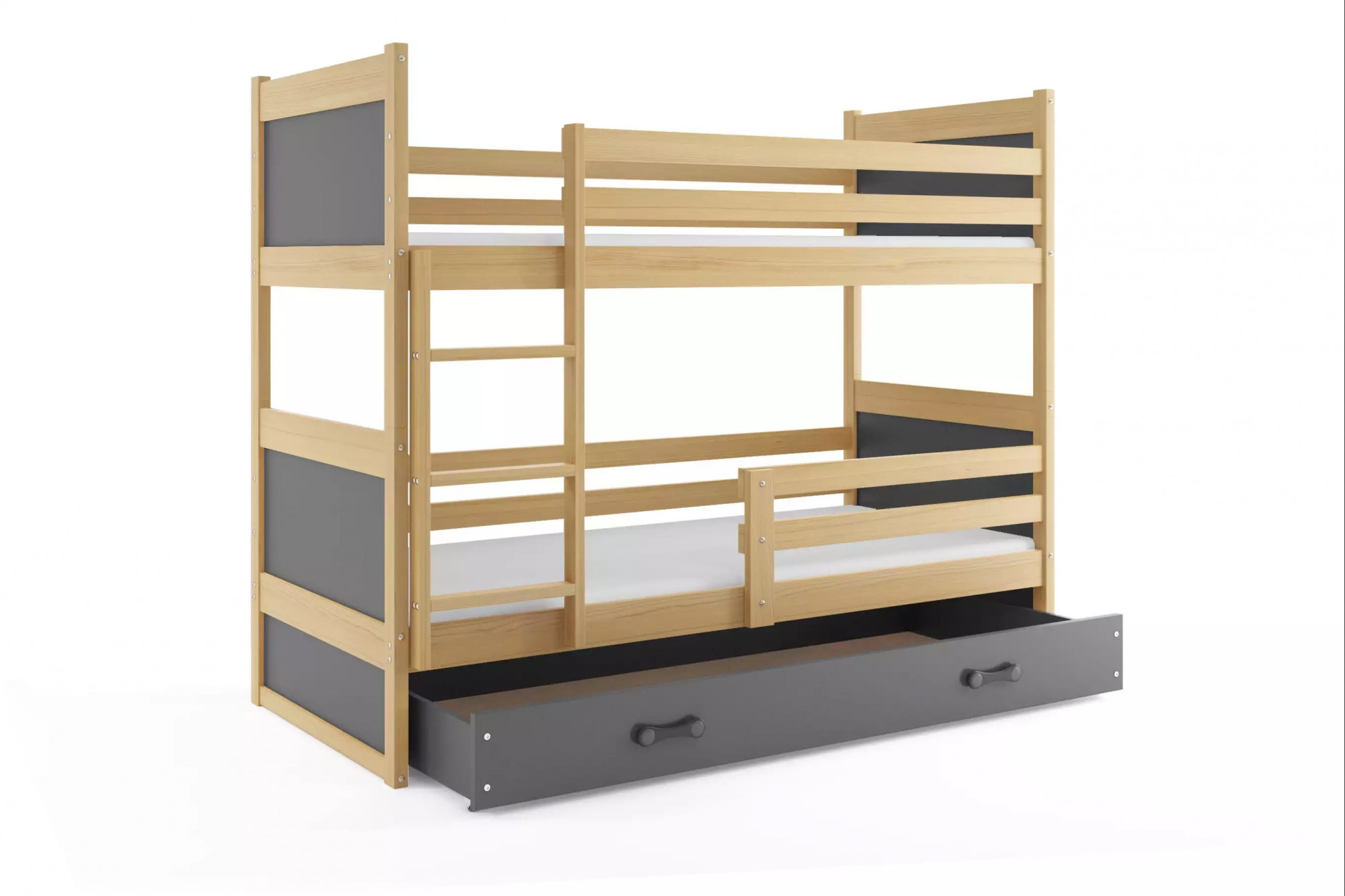 Detská poschodová posteľ RICO so zásuvkou 90x200 cm, bez matraca, Prírodná/Grafit