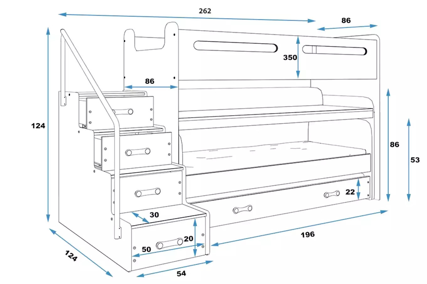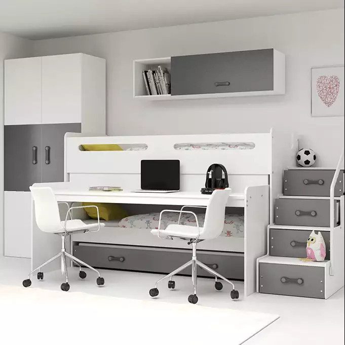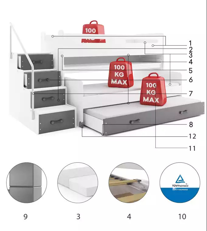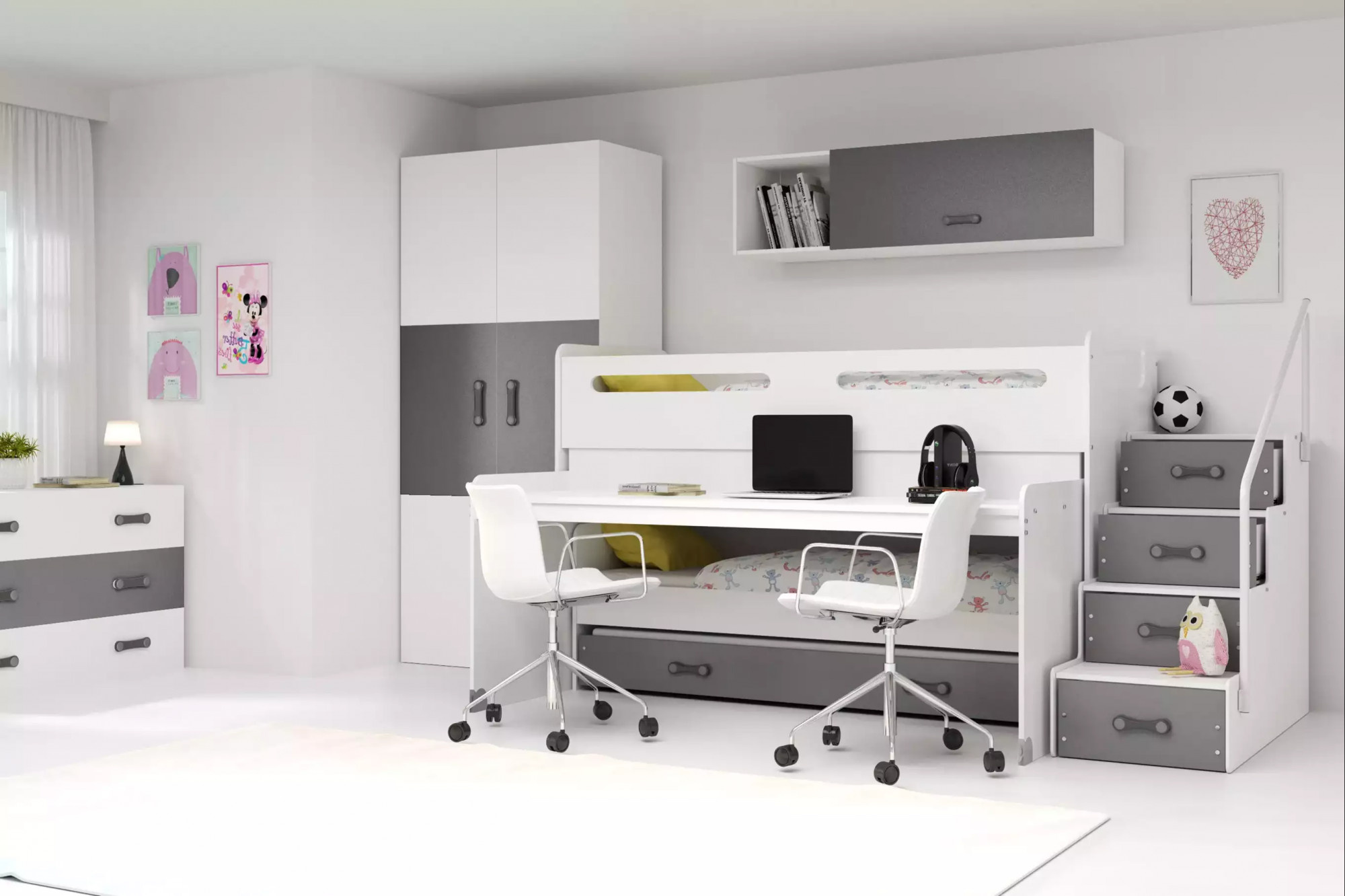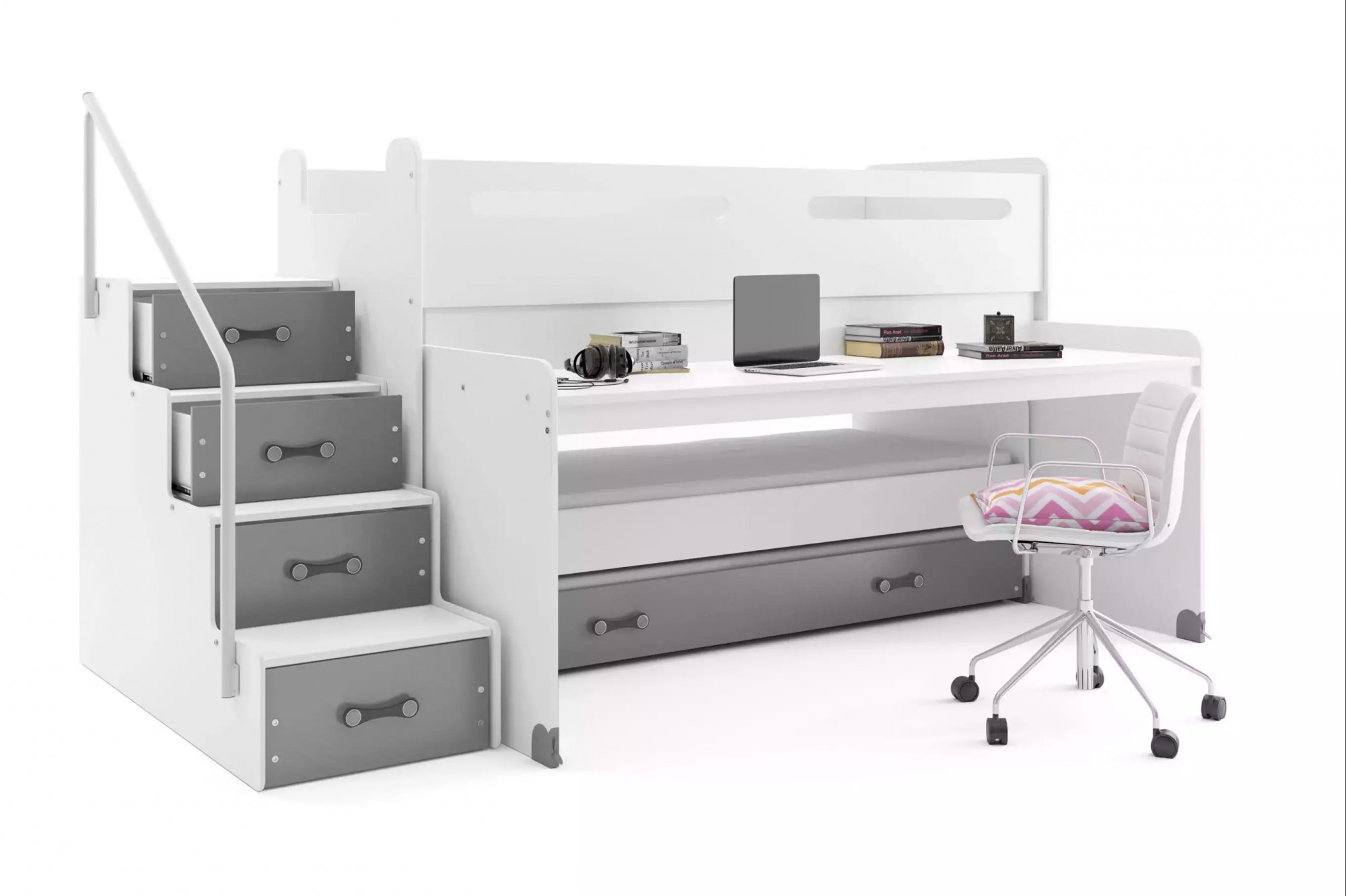 Detská poschodová posteľ s písacím stolom MAX 1 Grafit, bez matraca 80 X 200, pre 3 osoby