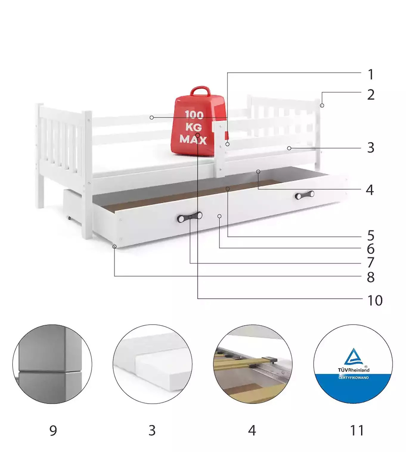 - Certifikovaná posteľ - kvalita a bezpečnosť podľa noriem TUV.