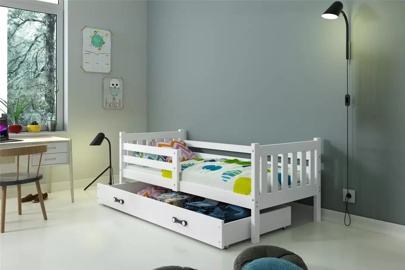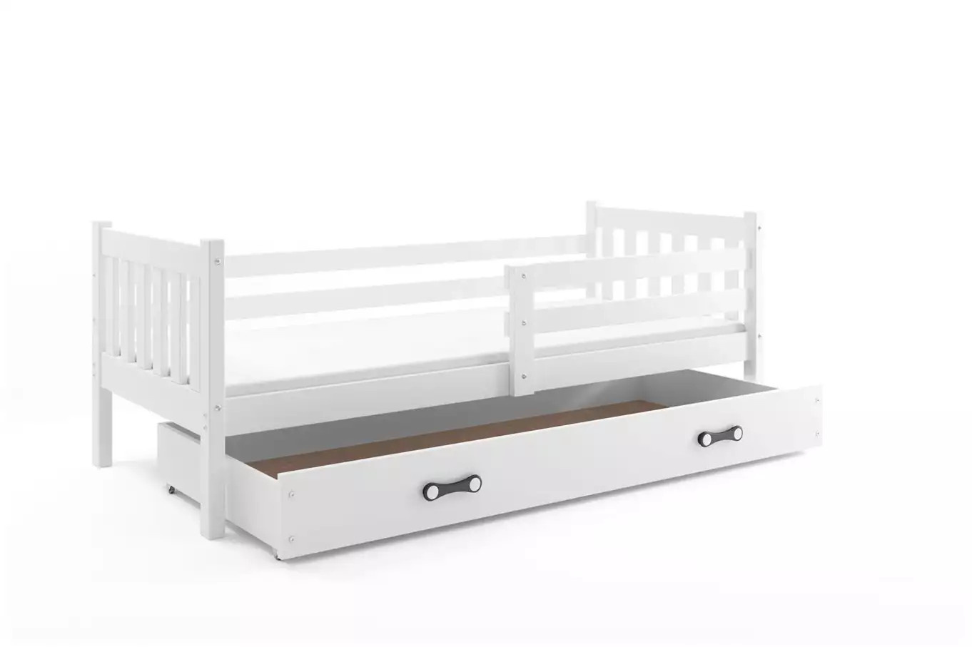 Detská posteľ CARINO 90x200 cm so zásuvkou, bez matraca, Biela/Biela