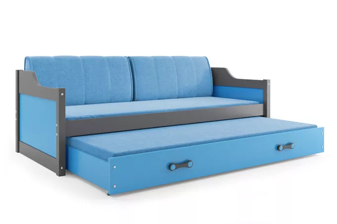 Detská posteľ DAVID s matracmi, 80x190 cm, Grafit/Modrá