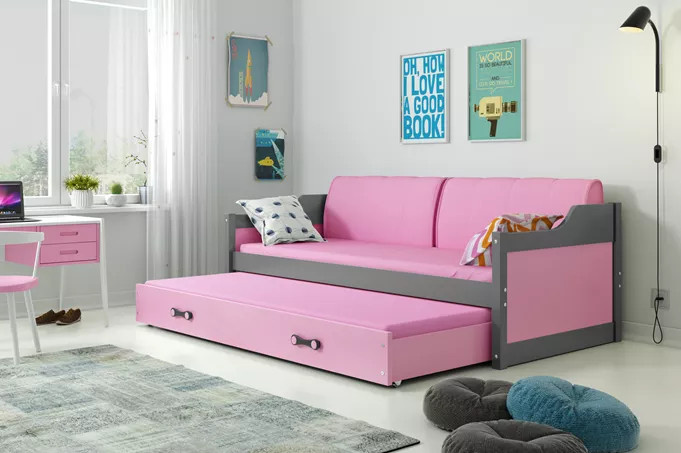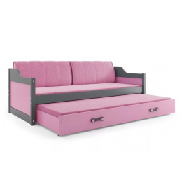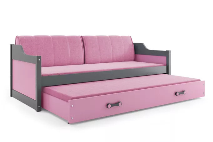 Detská posteľ DAVID s matracmi, 80x190 cm, Grafit/Ružová