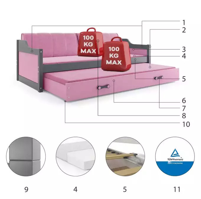 - Certifikovaná posteľ - kvalita a bezpečnosť podľa noriem TUV.