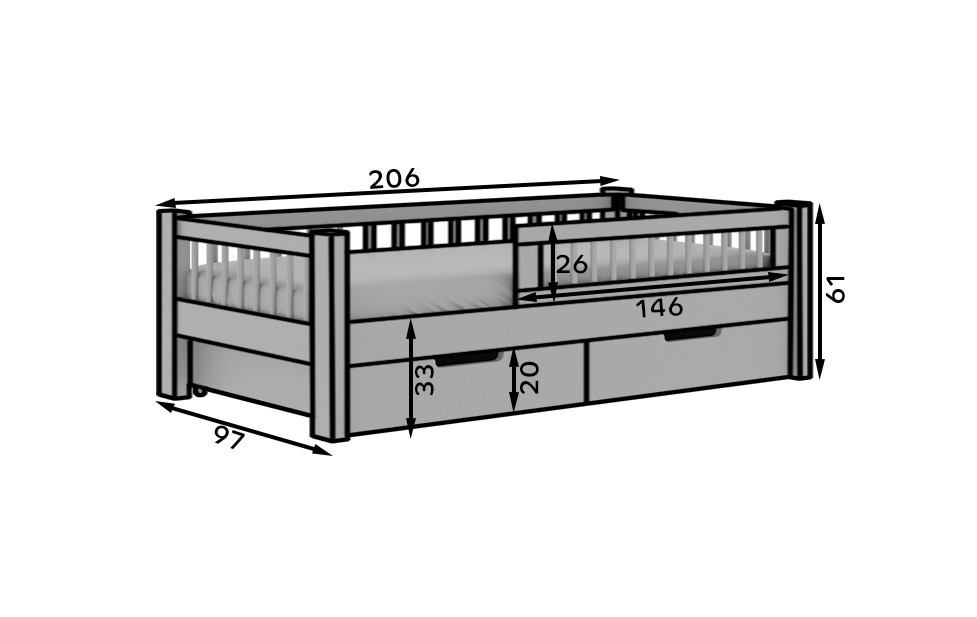 Detská posteľ Flora je ideálnym riešením do izby vášho dieťaťa. Navrhnuté s ohľadom na pohodlie a praktickosť, poskytuje pohodlné miesto na spanie pre jednu osobu, a zároveň umožňuje maximálne využitie priestoru vďaka dvom úložným boxom na posteľnú bielizeň. Posteľ Flora nie je len estetickým doplnkom, ale aj praktickou voľbou, ktorá pomôže udržať poriadok v izbe vášho dieťaťa.