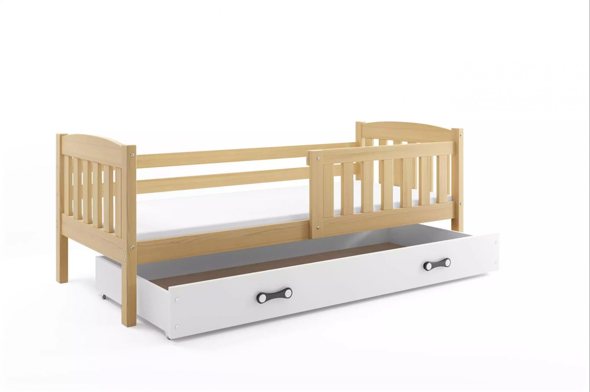 Detská posteľ KUBUS 80x160 cm so zásuvkou, s matracom, Prírodná/Biela