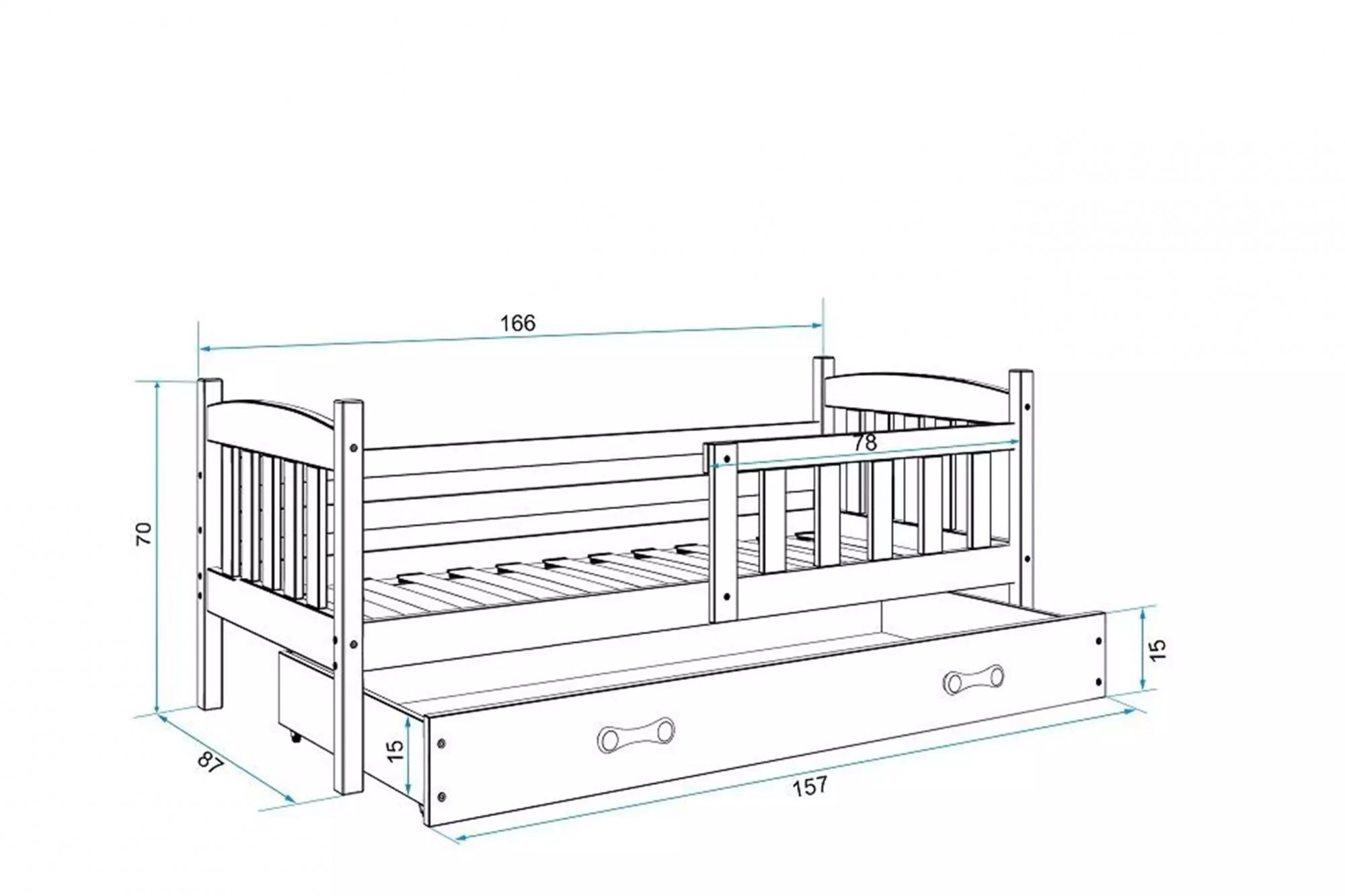 - Rám postele - vyrobený z borovicového dreva, lakovaný vodným lakom.