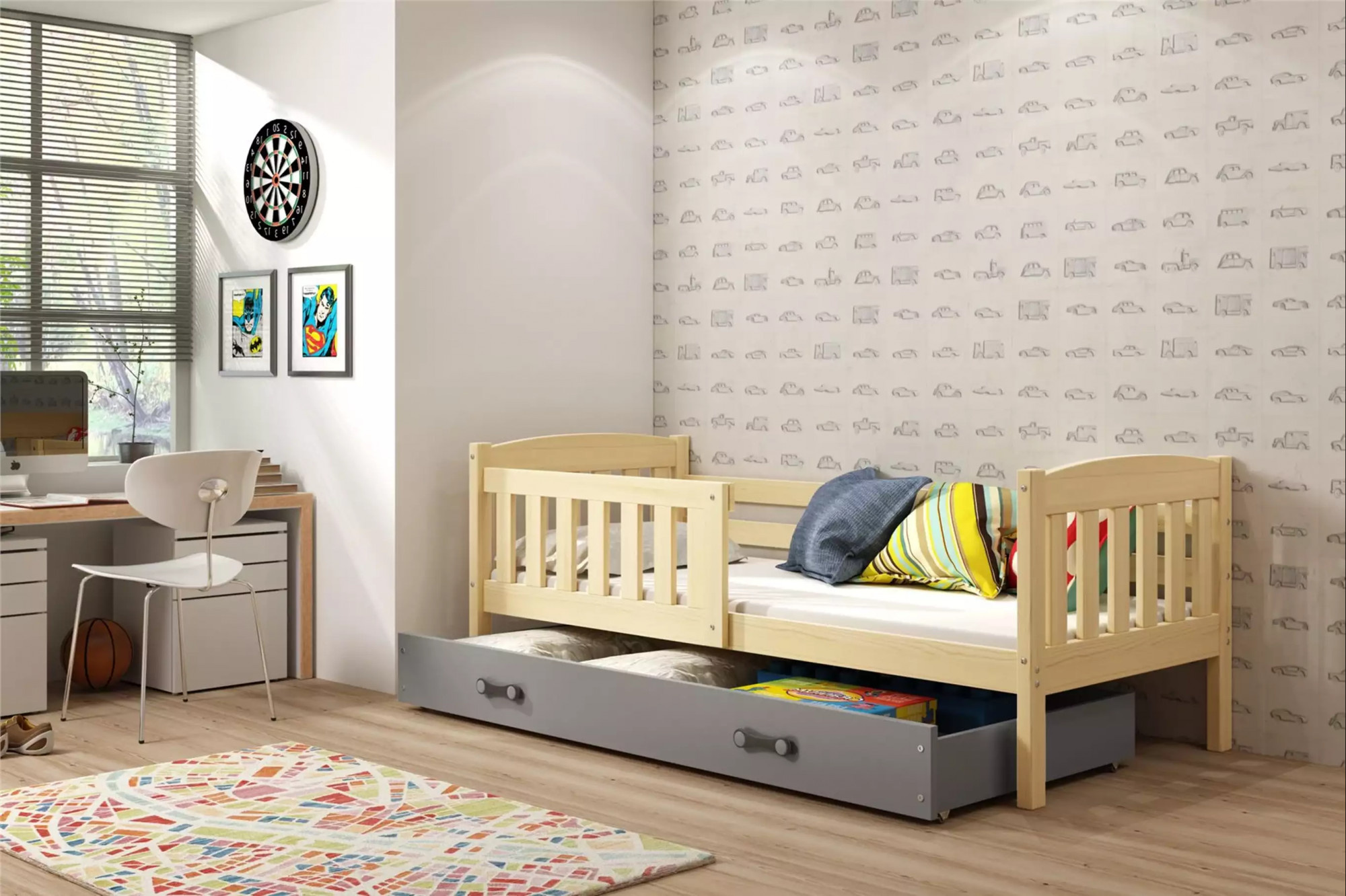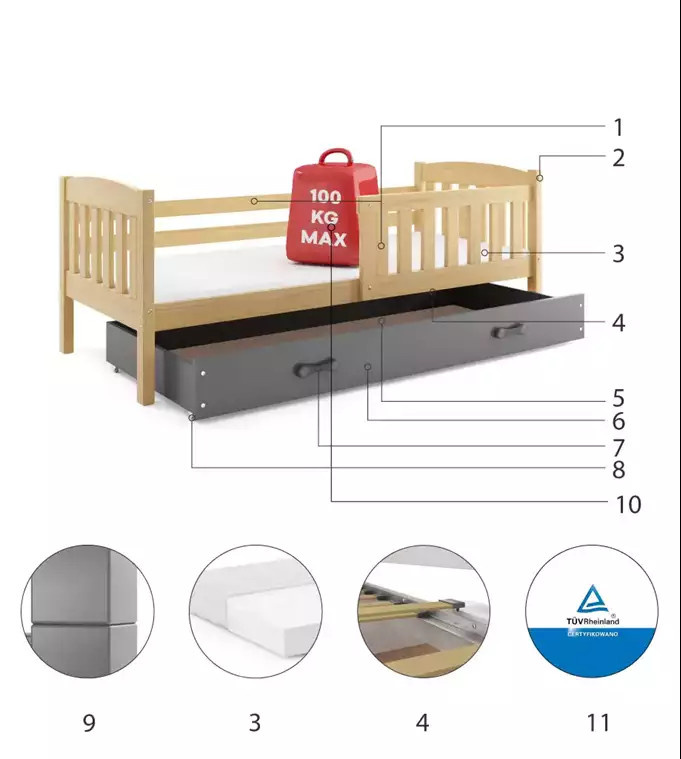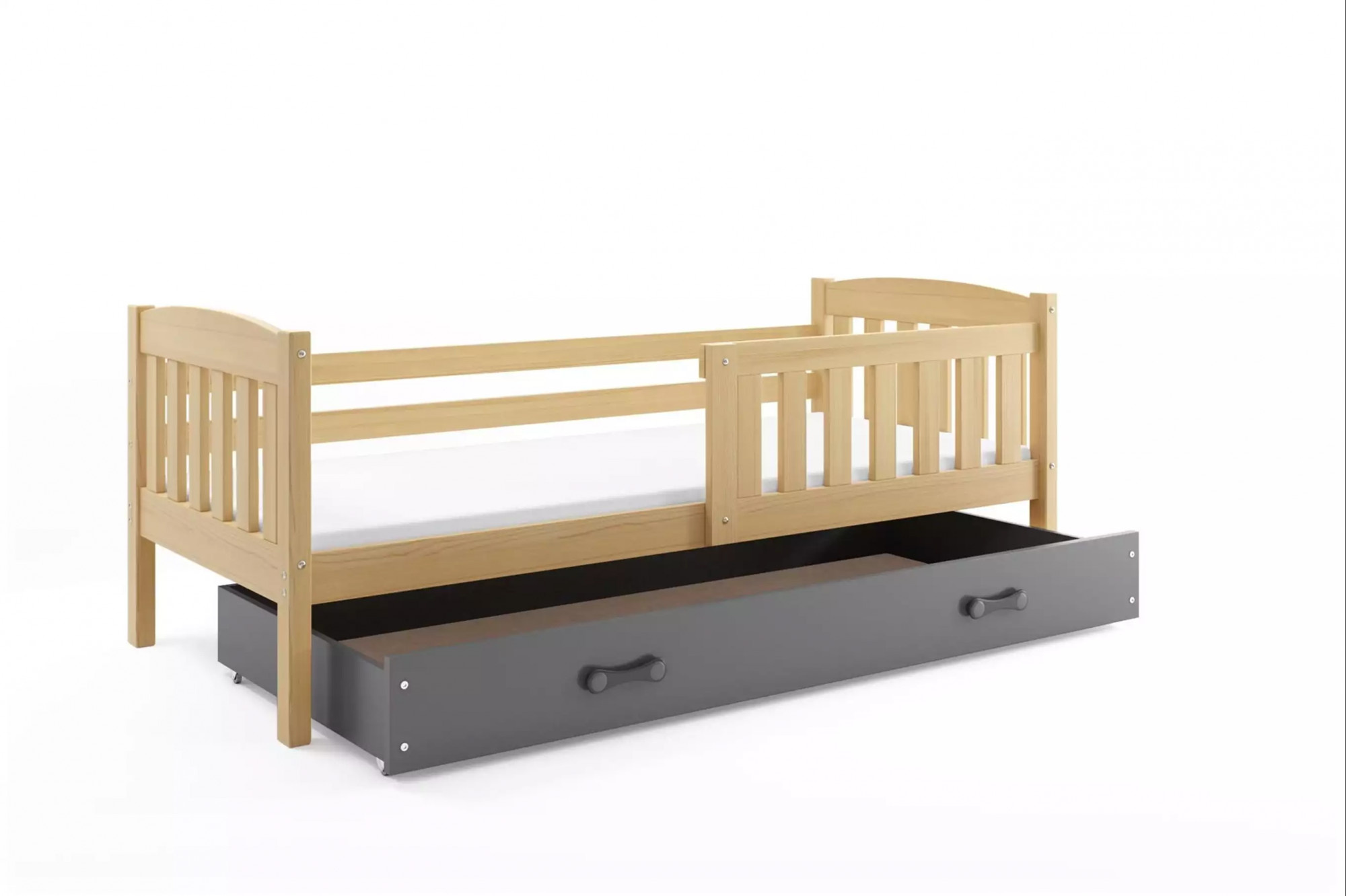 Detská posteľ KUBUS 80x160 cm so zásuvkou, s matracom, Prírodná/Grafit