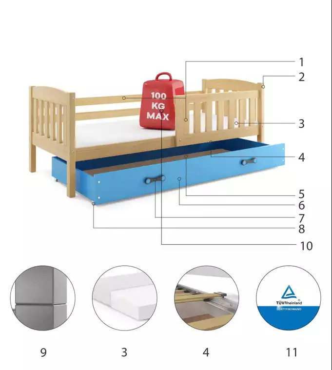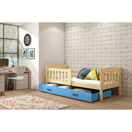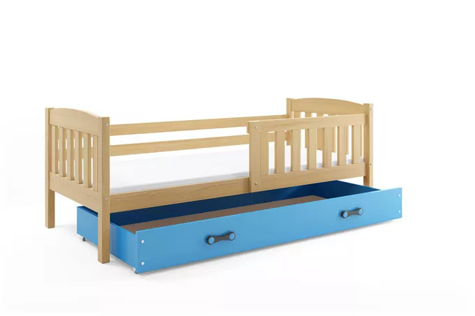 Detská posteľ KUBUS 80x160 cm so zásuvkou, s matracom, Prírodná/Modrá