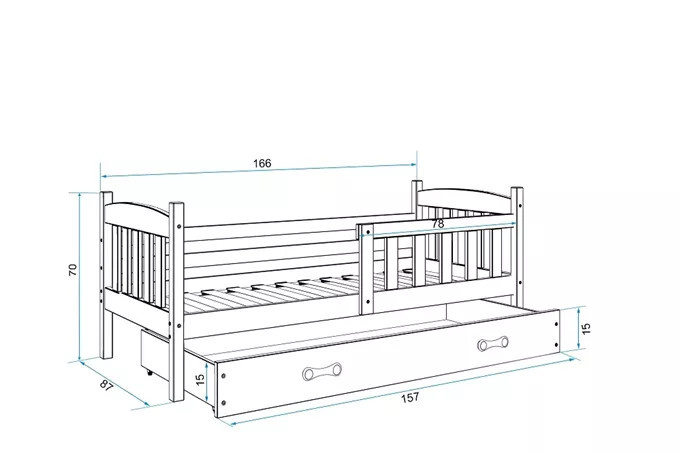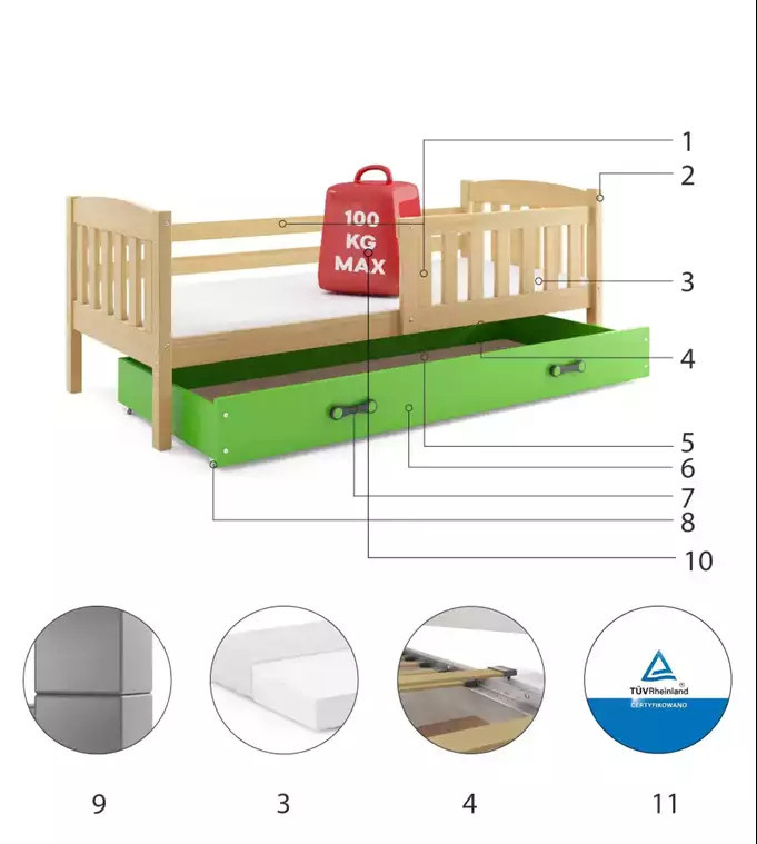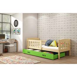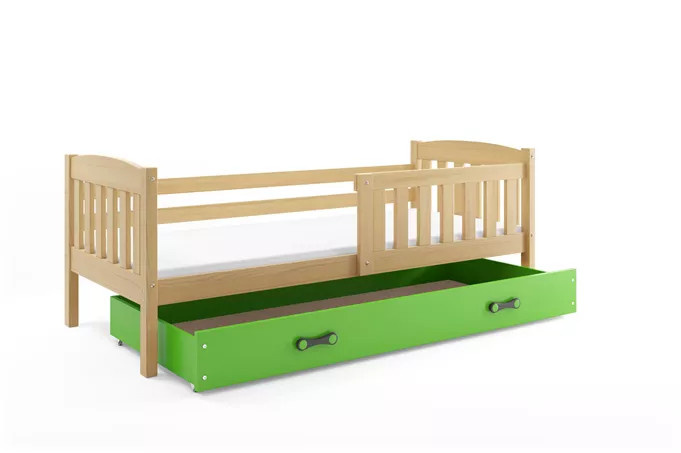 Detská posteľ KUBUS 80x160 cm so zásuvkou, s matracom, Prírodná/Zelená