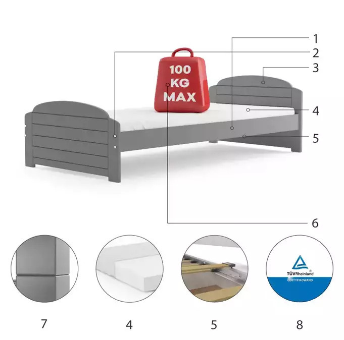 - Certifikovaná posteľ - kvalita a bezpečnosť podľa noriem TUV.