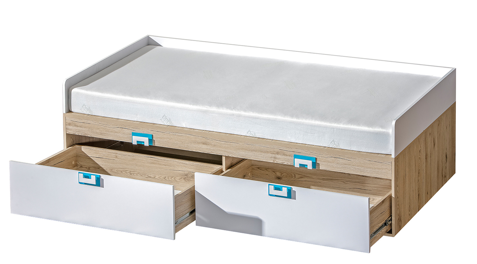 Detská posteľ NICO 14, Svetlý Dub/Biela/Tyrkysová