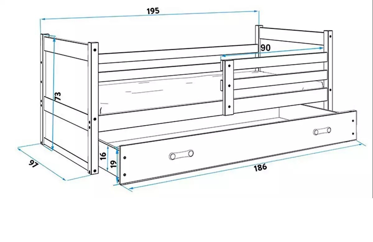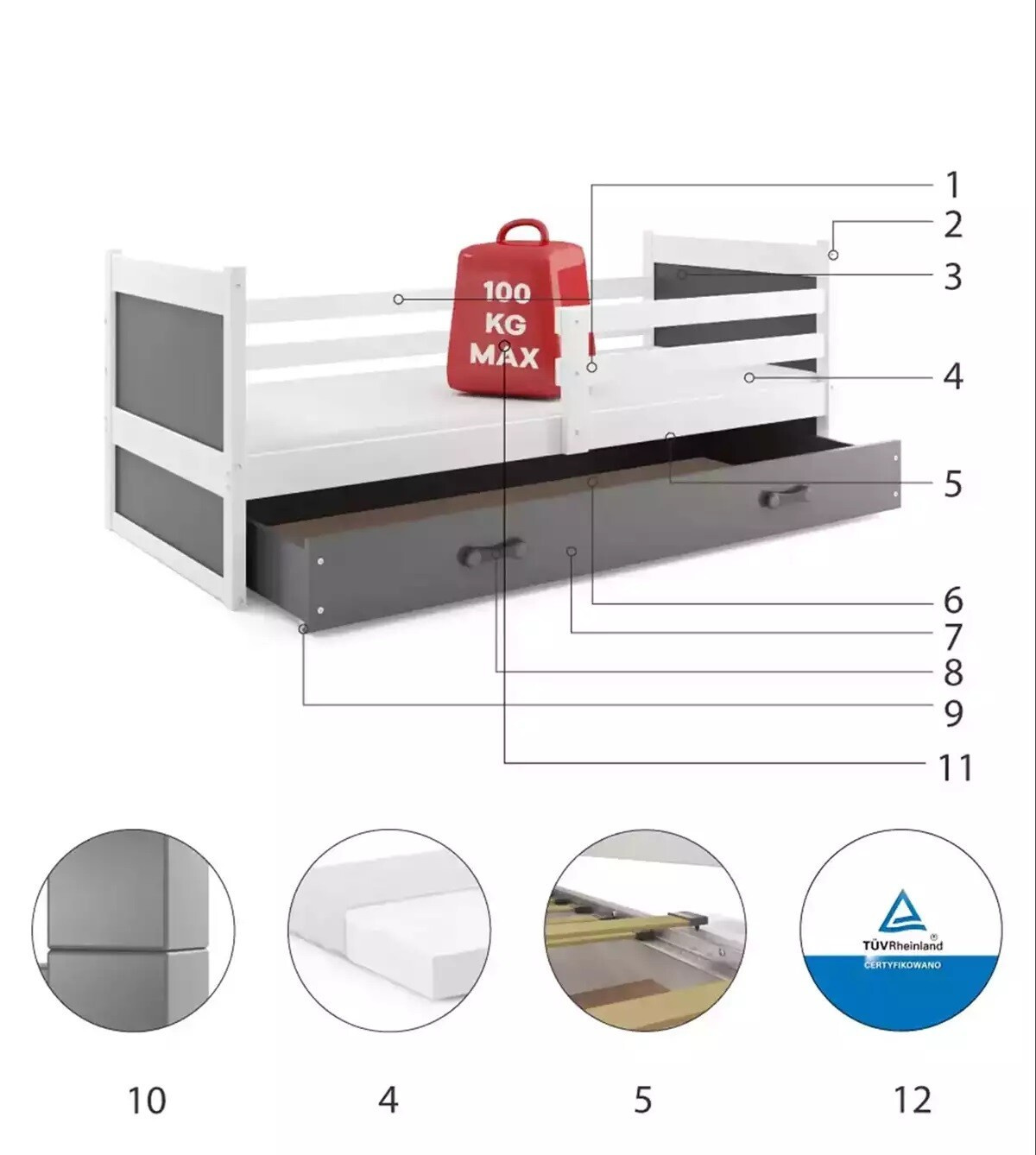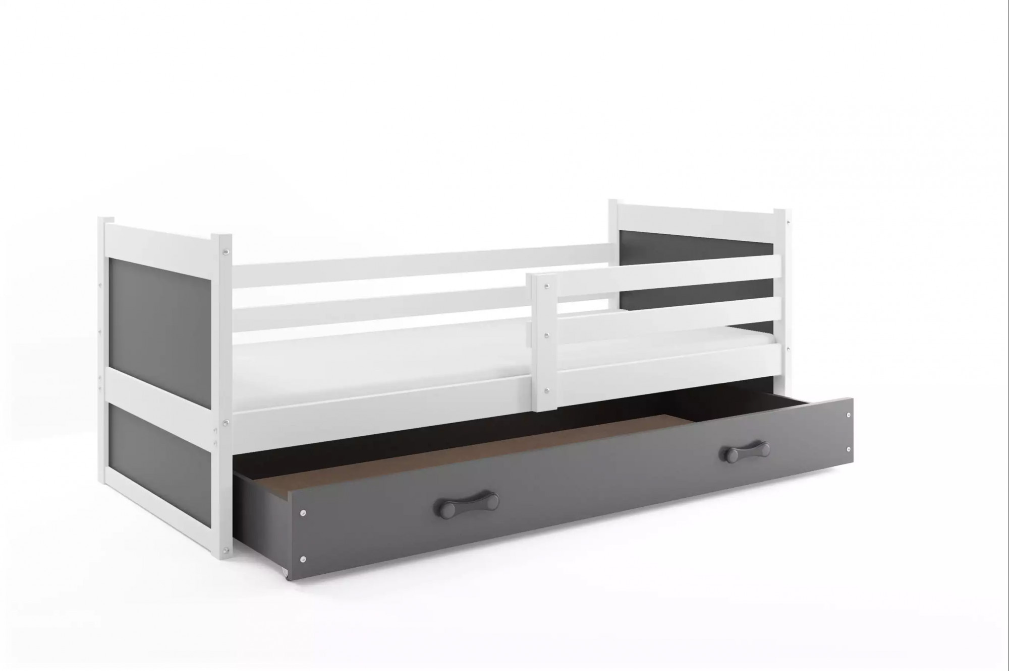 Detská posteľ RICO 90x190 cm so zásuvkou, bez matraca, Biela/Grafit