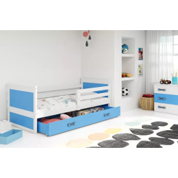 Detská posteľ RICO 90x190 cm so zásuvkou, s matracom, Biela/Modrá