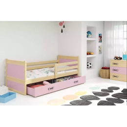 Detská posteľ RICO 90x190 cm so zásuvkou, s matracom, Prírodná/Ružová