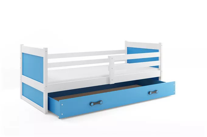 Detská posteľ RICO 90x200 cm so zásuvkou, bez matraca, Biela/Modrá