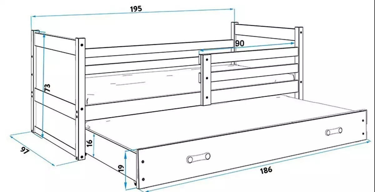 - Rám postele - vyrobený z borovicového dreva, lakovaný vodným lakom.