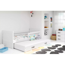 Detská posteľ RICO s prístelkou 90x190 cm, s matracami, Biela/Biela