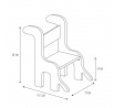 Detská stolička v tvare dinosaura sa hodí do izby malého cestovateľa, ktorý má rád motív prehistorických tvorov a dinosaurov. Nízka, detské veľkosti prispôsobená stolička bola vyrobená z MDF dosky vyrezanej do tvaru dinosaura. Základom stoličky sú štyri nohy. Stolička vyžaduje jednoduchú montáž. Max. zaťaženie stoličky 60 kg. Rozmery kartónu: 35x48x46 cm. Max 4 ks v kartóne