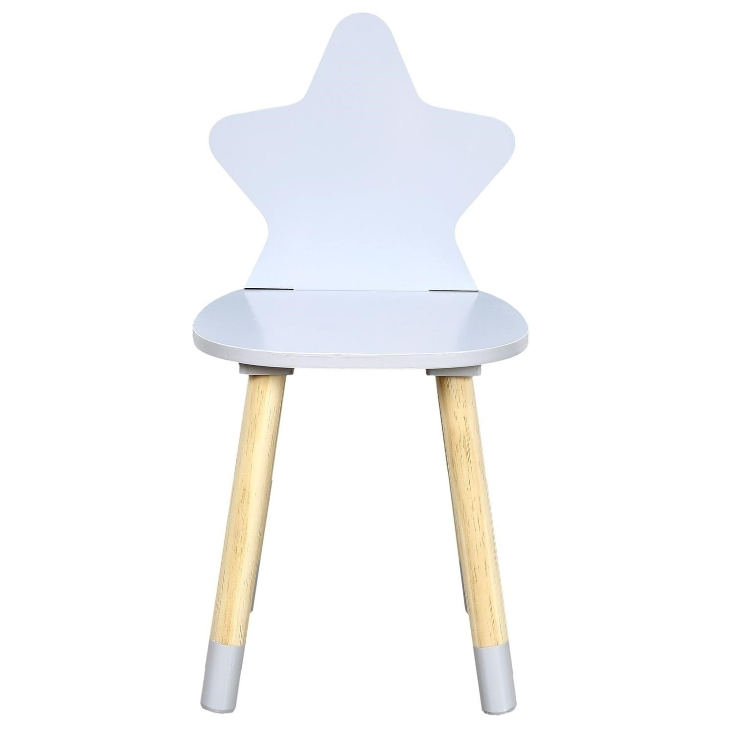 Puppe je stolička s operadlom v tvare hviezdičky, ktorá sa ideálne hodí do izby malého dieťaťa. Stolička Puppe bola vyrobená z borovicového dreva, lakovaného a natretého na sivú farbu. Detská stolička je ideálne sedadlo v jedinečnom prevedení. Nohy stoličky v prírodnej farbe boli dokončené sivou farbou. Stolička bola vyrobená s precíznosťou na najmenšie detaily, z najkvalitnejších materiálov a komponentov, vďaka čomu je nielen odolná, ale aj bezpečná. Rozmery balenia 42 x 36 x 32 cm