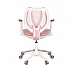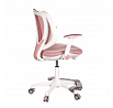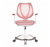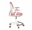 Detská stolička v príjemných pastelových farbách spolu s bielou kostrou ponúka jednoduchý a elegantný dizajn. Stolička má pevné operadlo potiahnuté priedušným sieťovaným materiálom. Sedák v rovnakom poťahu poskytuje dostatok pohodlia vďaka svojmu vymäkčeniu. Pre pocit pohodlia slúžia pevné podrúčky, ktoré sú na svojej vrchnej časti opatrené lesklým plastovým povrchom vo farbe poťahového materiálu. Dôležitá je aj integrovaná opora nôh, ktorá prispieva k pohodlnému sedeniu. Stolička je vybavená špeciálnymi funkčnými kolieskami, ktoré sa pri zaťažení automaticky zablokujú, čo zabraňuje nechceným pohybom stoličky.