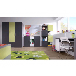 Detský systém LIDLO je moderný a praktický nábytok v jemných farbách vhodný nielen do detských izieb, ale aj do kancelárií, študentských izieb alebo obývačiek. Je k dispozícii v troch farbách - grafitovej/zelenej, grafitovej/bielej a grafitovej/fialovej, ktoré môžete kombinovať podľa vlastnej fantázie. Telesá majú vždy grafitovú farbu. Nábytok je vyrobený z laminovaných dosiek.