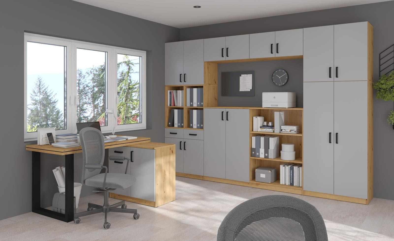 Potrebujete zariadiť svoju kanceláriu alebo domácu pracovňu? Kolekcia kancelárskeho nábytku Matylda vám vďaka rôznorodosti prvkov a dekorov ponúka širokú škálu možností, ako vybaviť váš pracovný priestor tak, aby bol efektívny a praktický. Séria sekcií Matylda je vyrobená z laminátu v jednoduchom dizajne, takže váš pracovný priestor bude pôsobiť vzdušne a vy sa v ňom budete cítiť pohodlne. Všetky prvky zostavy sú vyrobené z laminátu, ktorý je odolný a ľahko sa udržiava. Na ďalších fotografiách sú pre inšpiráciu zobrazené izby vybavené týmto nábytkom.
