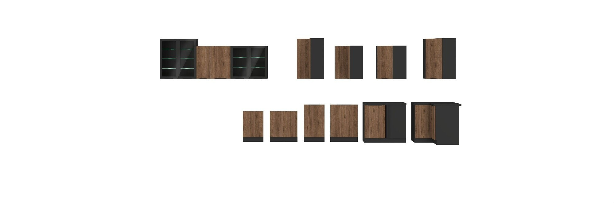 - Kuchyňa MONZA - Čierna/Orech Okapi