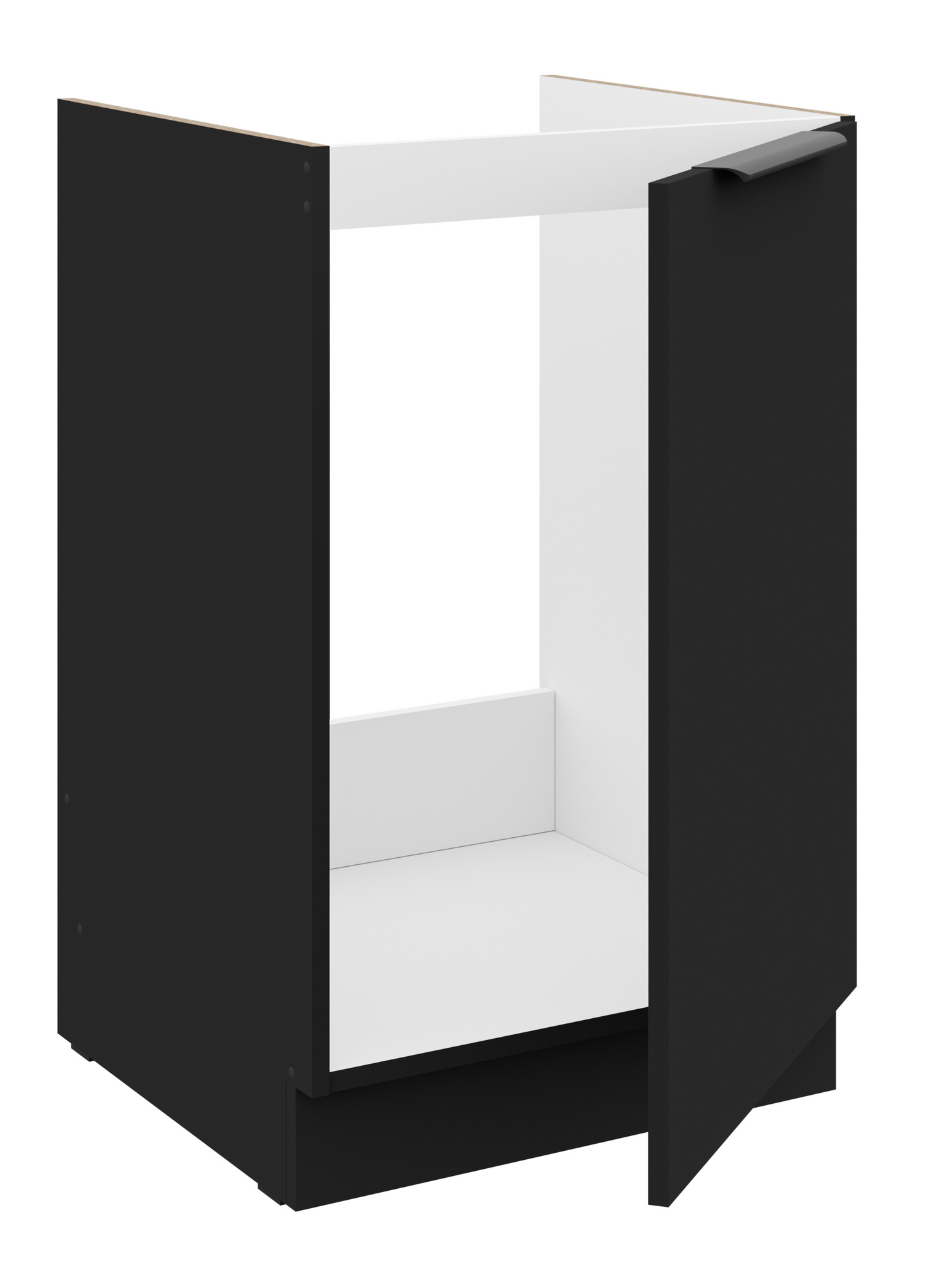 - Dvierka a čelá zásuviek sú vyrobené z LTD dosky výšky 16 mm v farbe Čierna mat