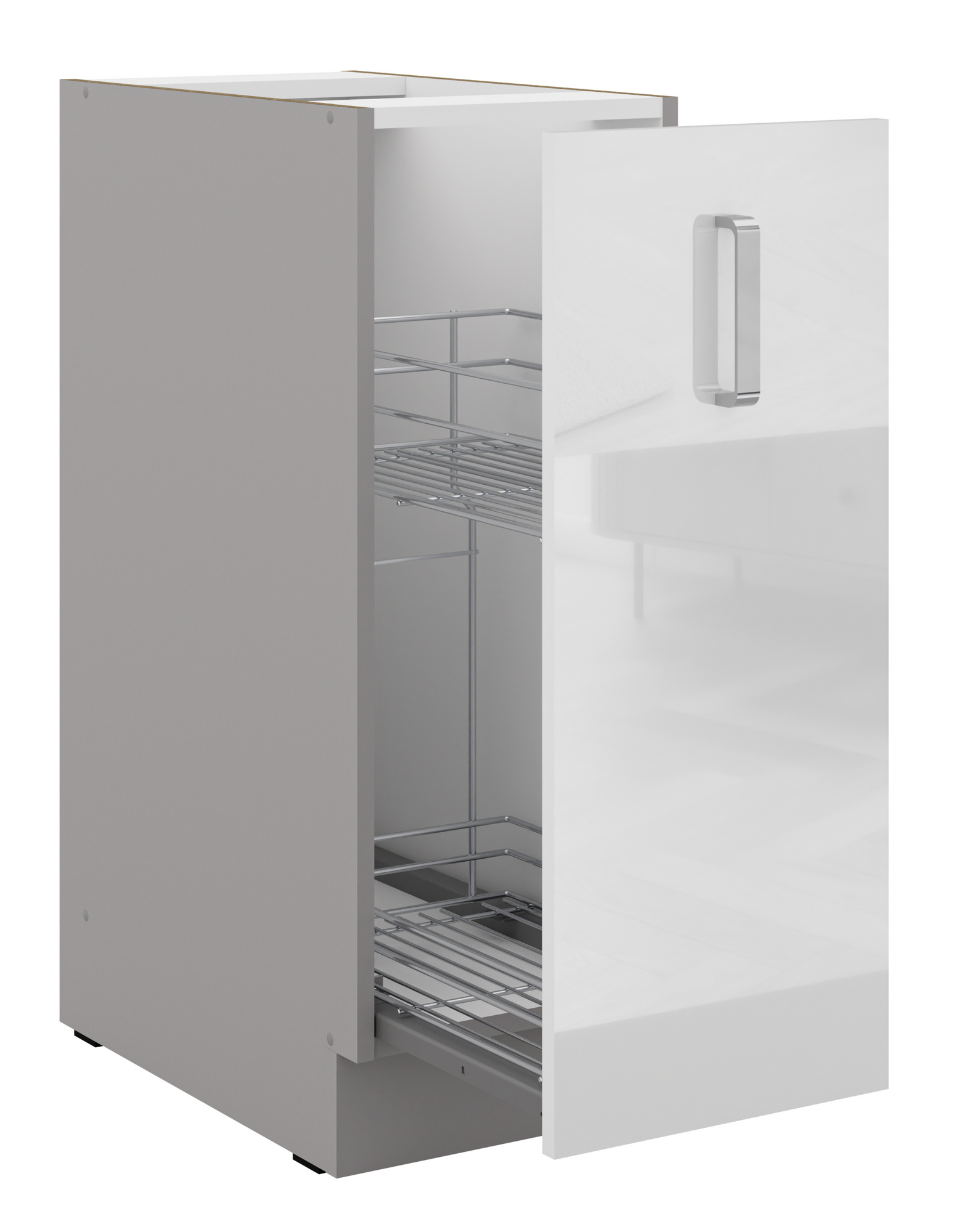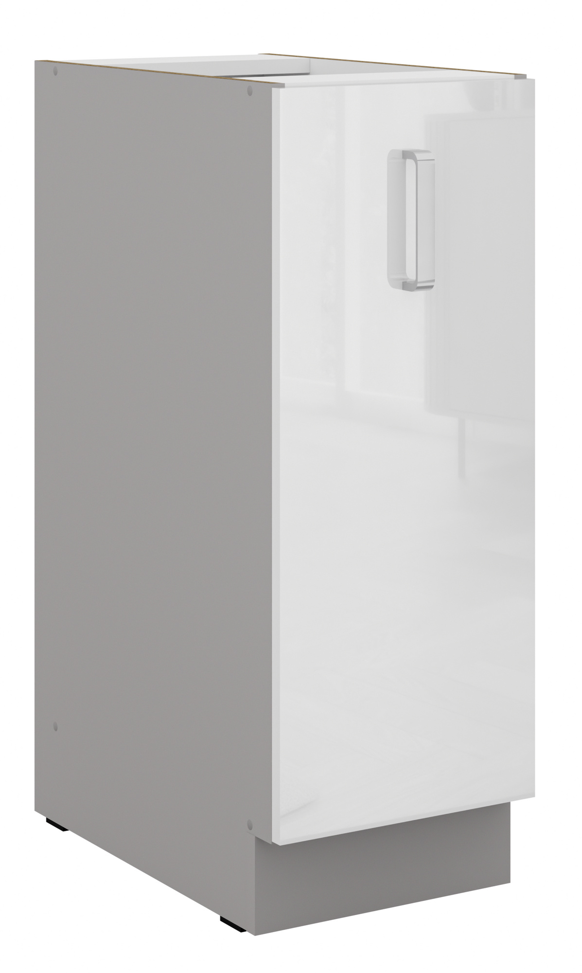 - Dvierka a čelá zásuviek sú vyrobené z laminovanej dosky 16 mm PUR HG v Bielom lesku