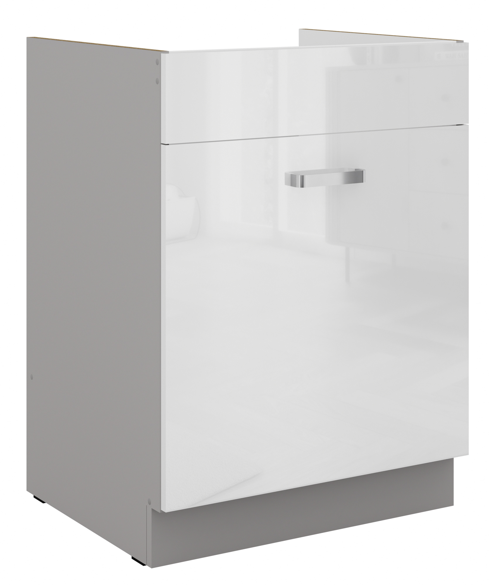 Dolní skřínka BIANCA - 60 ZL 1S BB, Šedá / Bílý lesk