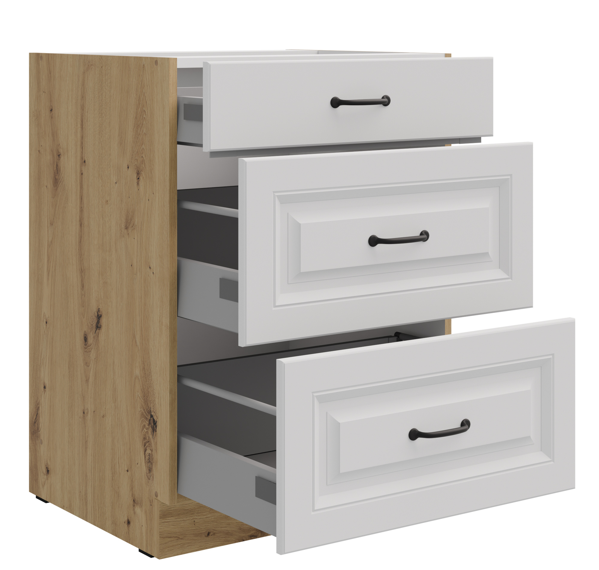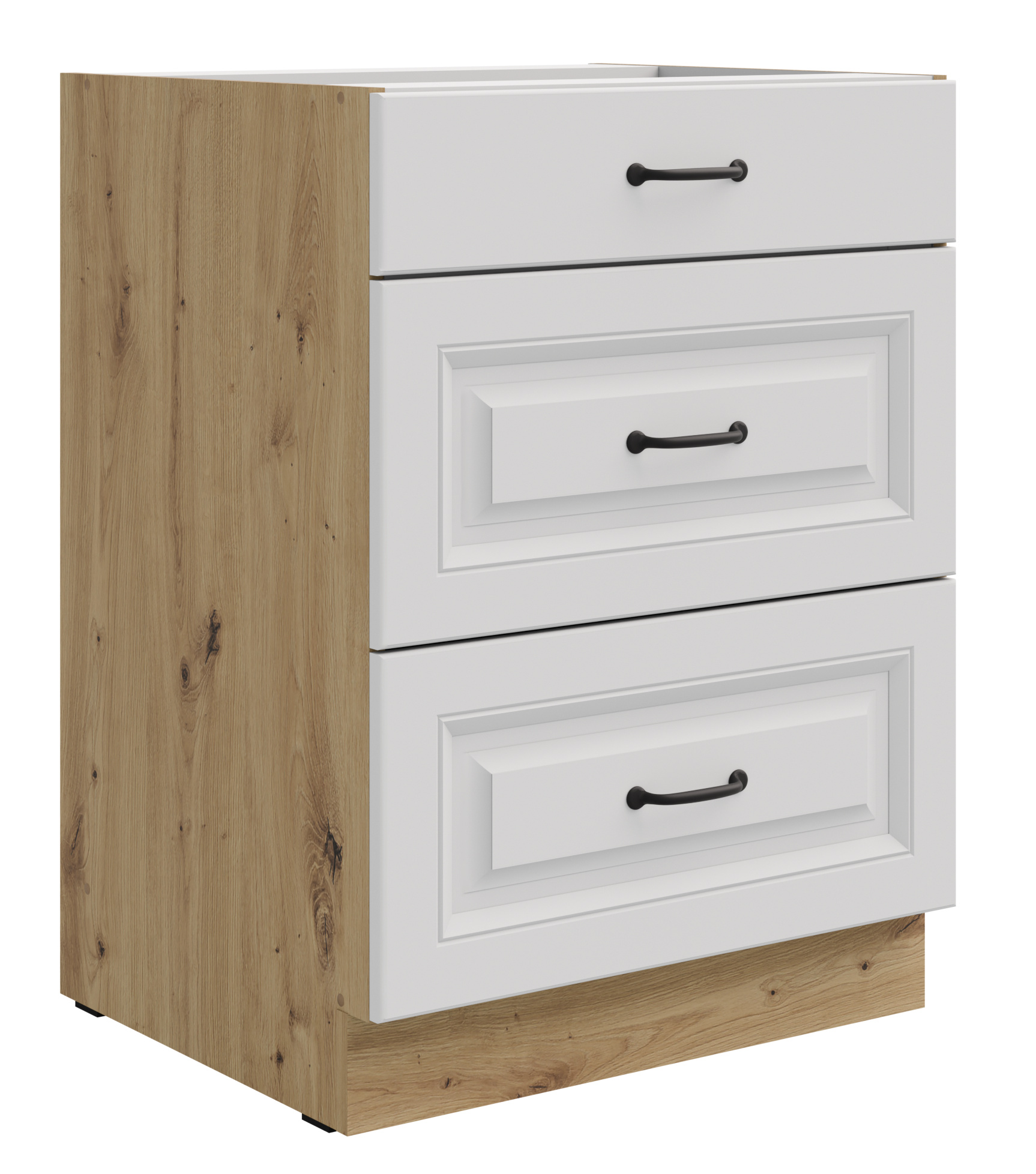 Dolní skříňka STELLO - 60 D 3S BB, Dub Artisan/Bílý mat