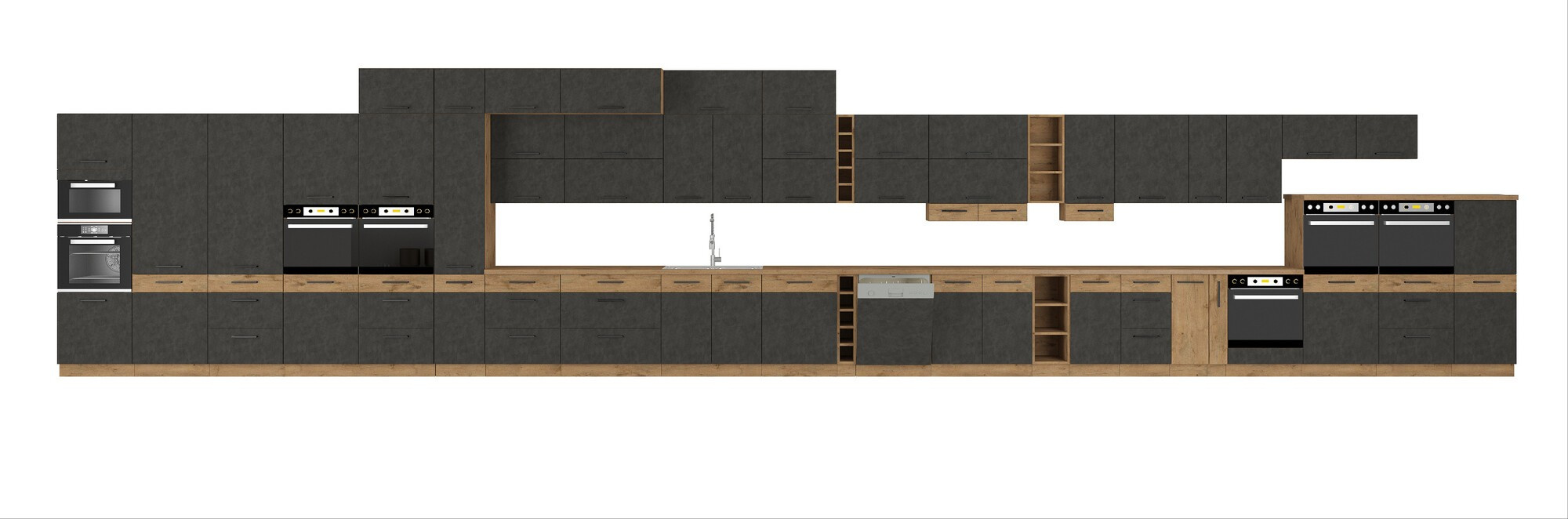 - Kuchyňa MONZA - Čierna/Orech Okapi
