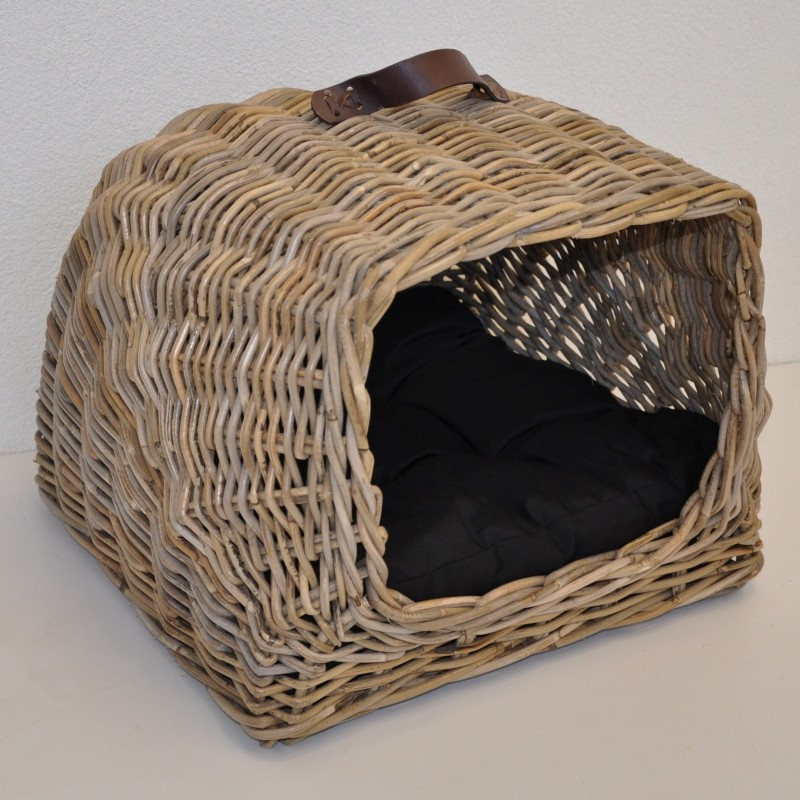 Pelech pre mačky je vyrobený z prírodného ratanu kubu v prírodnej sivej farbe. | Krásny a pevný pelech pre vášho domáceho miláčika. Farba ratanovej konštrukcie je prírodná sivá. Celková veľkosť je 50 x 53 x 40 cm. Veľkosť vstupného otvoru je 30x28 cm. Veľkosť vnútorného vankúša je 46x46 cm.