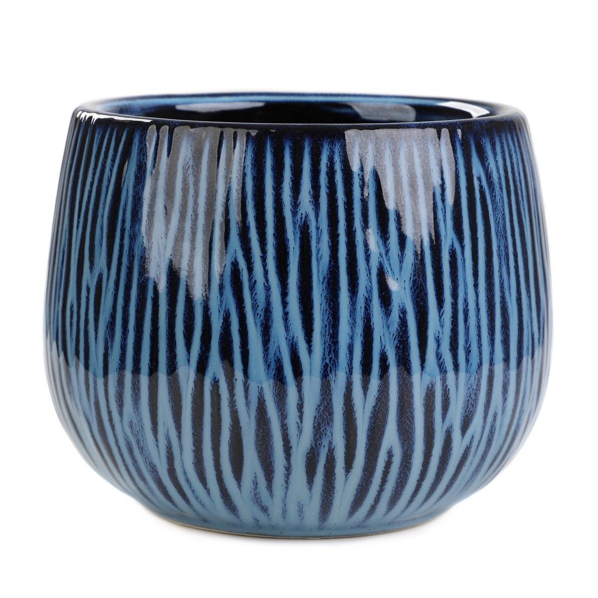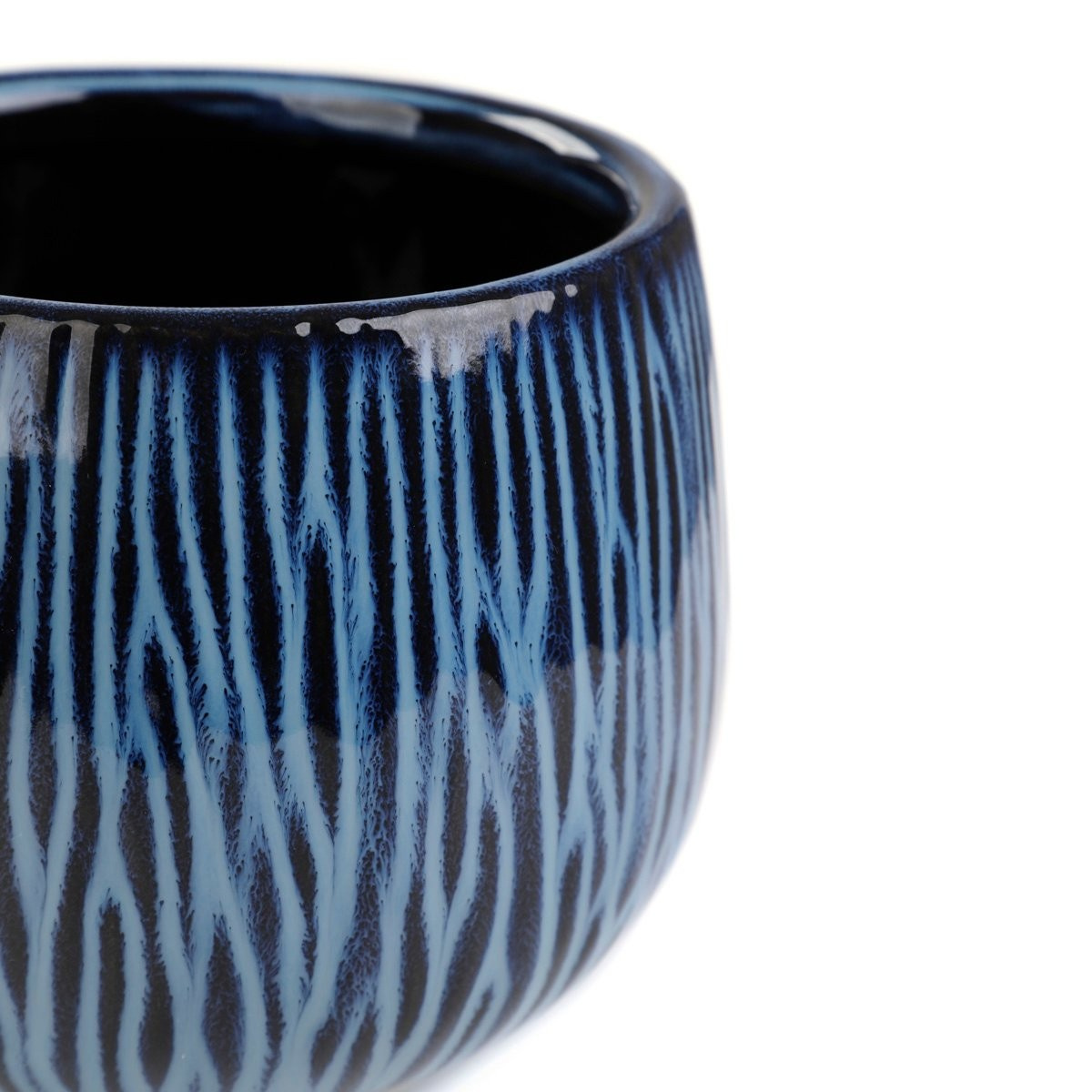 Vyznačuje sa jemne zaobleným tvarom a lesklým, hladkým povrchom. Je zdobený nepravidelným vzorom modrých čiar, ktorý sa dokonale mieša s tmavomodrým pozadím.Účel