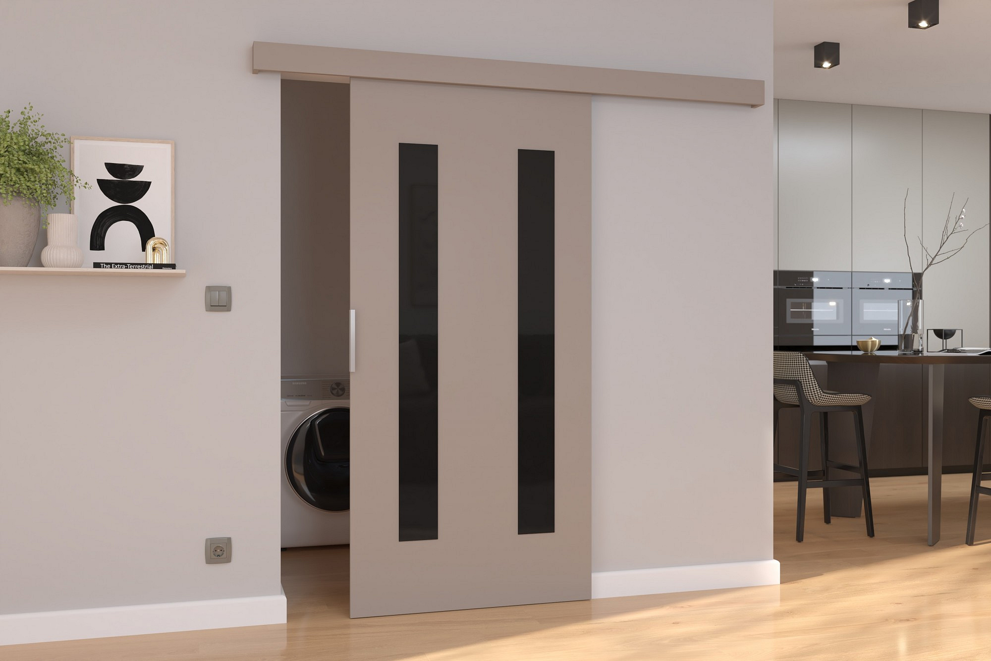 Drzwi przesuwne naścienne HERS 106 Kaszmir+Czarny Lacobel