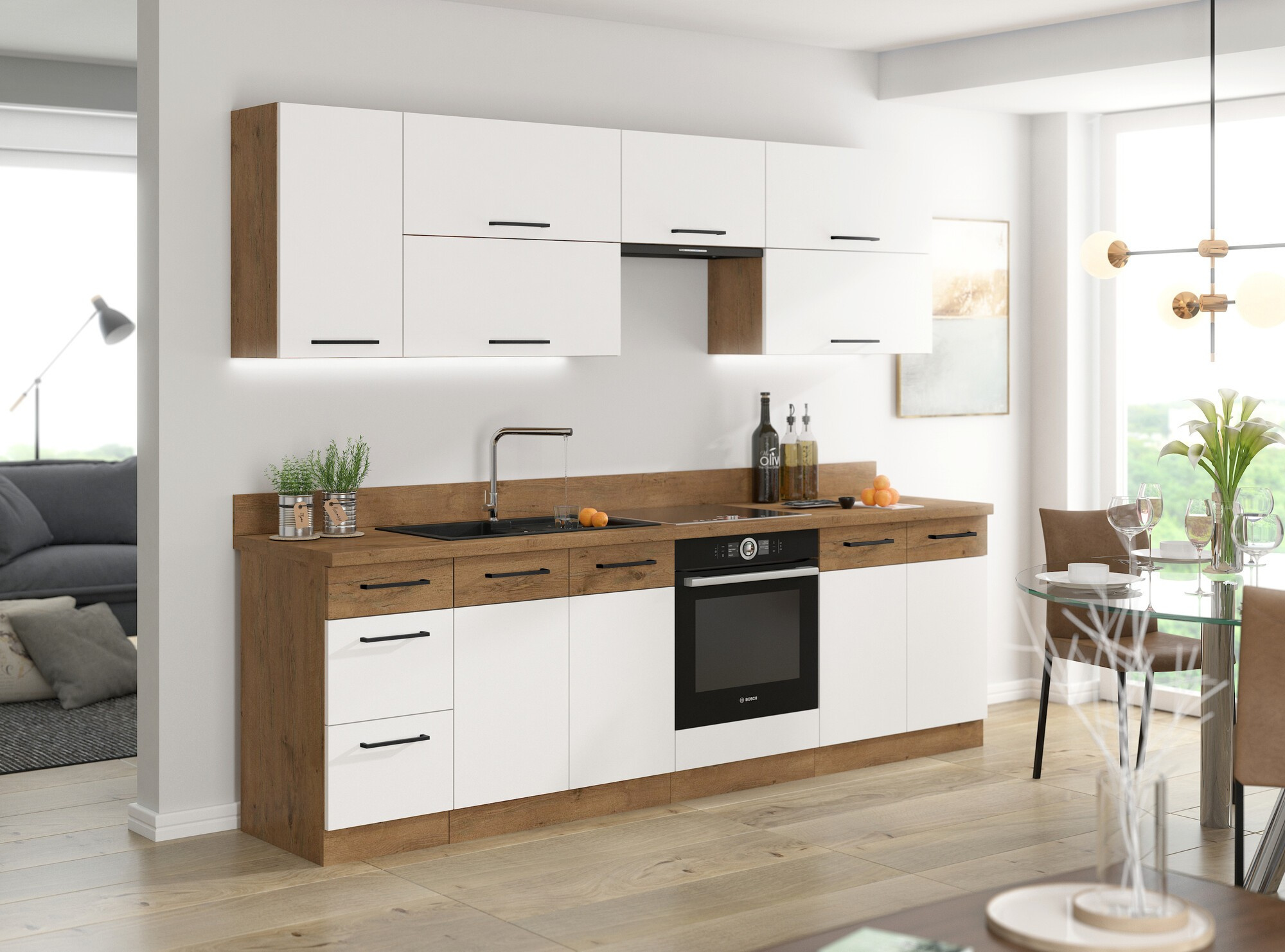 - Kuchyně VEGAS - Dub Lancelot / Bílý Lesk