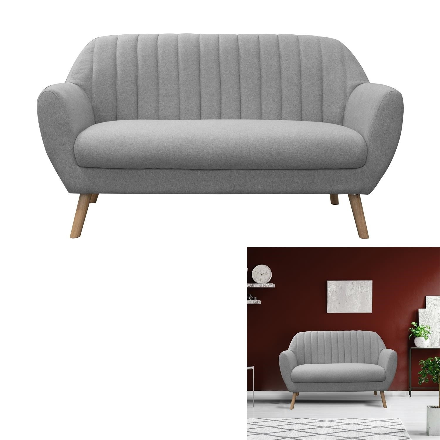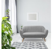 Dvojmiestna sedačka ozdobená sivou látkou s vertikálnym prešívaním sa hodí do menšej obývačky alebo čakárne v salóne krásy. Sedačka ideálne podčiarkne škandinávsky štýl v interiéri. Sedačka nie je rozkladacia. Nohy pohovky z masívneho kaučukového dreva v prírodnej farbe. Pohodlné, široké podrúčky podopierajú naše ruky a umožňujú pohodlne sa posadiť. Sedačka s hmotnosťou 19,5 kg bola vybavená čalúnnickou penou ozdobenou sivou tkaninou. Hrúbka peny 28 kg/m3.