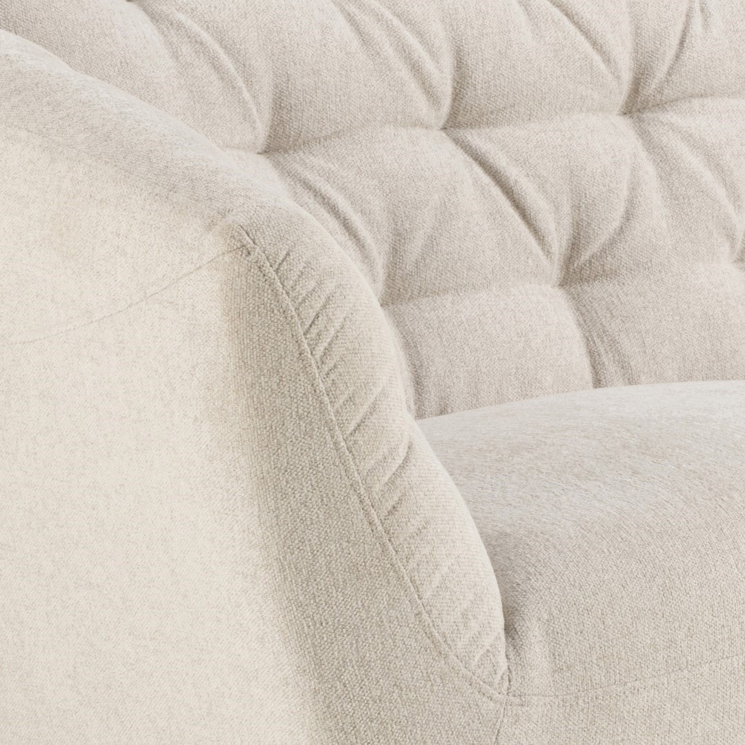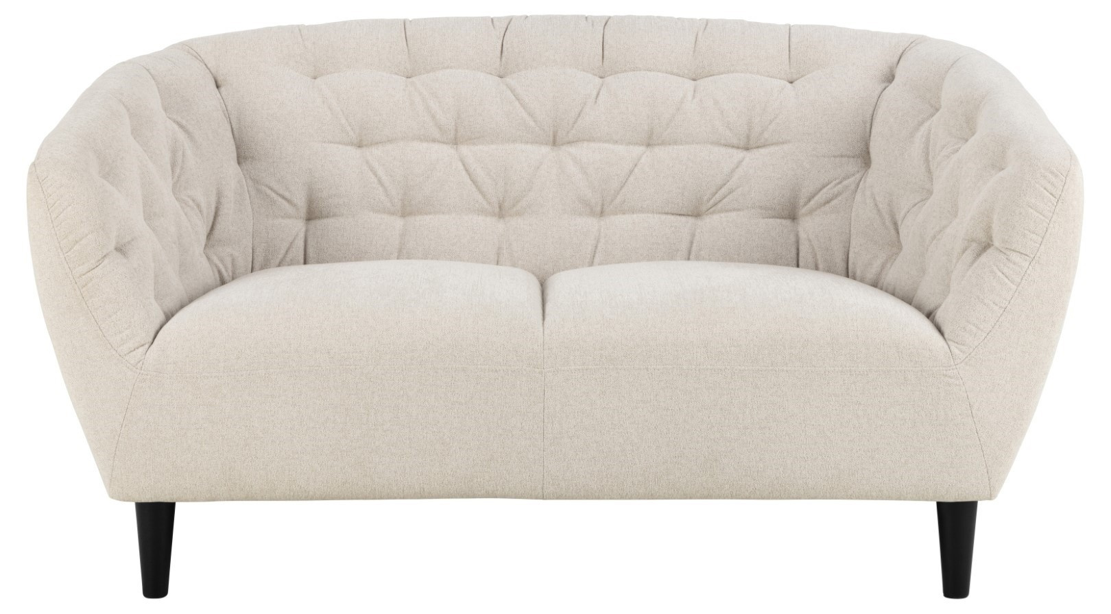 Béžová 2-miestna pohovka Ria s oblými tvarmi je plná štýlu. Jej textúrovaný povrch poskytuje jemné pocity a vreckové pružiny zaisťujú vysoký komfort, čím zvyšujú zážitky počas odpočinku. Od ženského prešívania po okrúhle, zužujúce sa čierne nožičky, táto pohovka vyžaruje klasickou estetikou. Elegantná 2-miestna pohovka s klasickou estetikou. Vreckové pružiny zabezpečujú vysoký komfort sedenia. Zakrivený, zaoblený tvar zaisťuje priateľský vzhľad. Béžová textúrovaná tkanina s mäkkým, živým povrchom. Prešívané detaily dodávajú textúru a ženský charakter. Čierne drevené nohy s okrúhlym, zužujúcim sa tvarom
