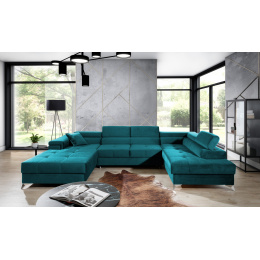 Eduardo je originálna vkusná a mimoriadne mäkká rohová pohovka, ktorá prináša do interiéru, v ktorom je umiestnená, závan sviežosti a luxusu. Nábytok s rozmermi 345 x 202 x 90 cm zaručuje maximálne pohodlie pre denný odpočinok aj relaxáciu v noci, pretože je vybavený funkciou spania s plochou určenou na tento účel - 125 x 265 cm. Delfíní mechanizmus sa tu tiež dostáva do popredia, ktorý intuitívne a bez námahy rozkladá nábytok do požadovanej polohy. Medzi ďalšie výhody môžeme zahrnúť priestranný úložný priestor na lôžkoviny umiestnený v otomane, rovnako ako pohodlné sedadlo vyrobené z HR peny, ktorá sa najlepšie prispôsobí nášmu telu počas spánku. Medzi ďalšie jedinečné vlastnosti rohovej pohovky patria: nastaviteľné opierky hlavy, široké podrúčky a vysoké kovové nohy. Rohová pohovka Eduardo je k dispozícii v celej rade látok zo vzorkovníka Eltap, čo vám umožňuje zariadiť váš interiér veľmi individuálnym spôsobom.