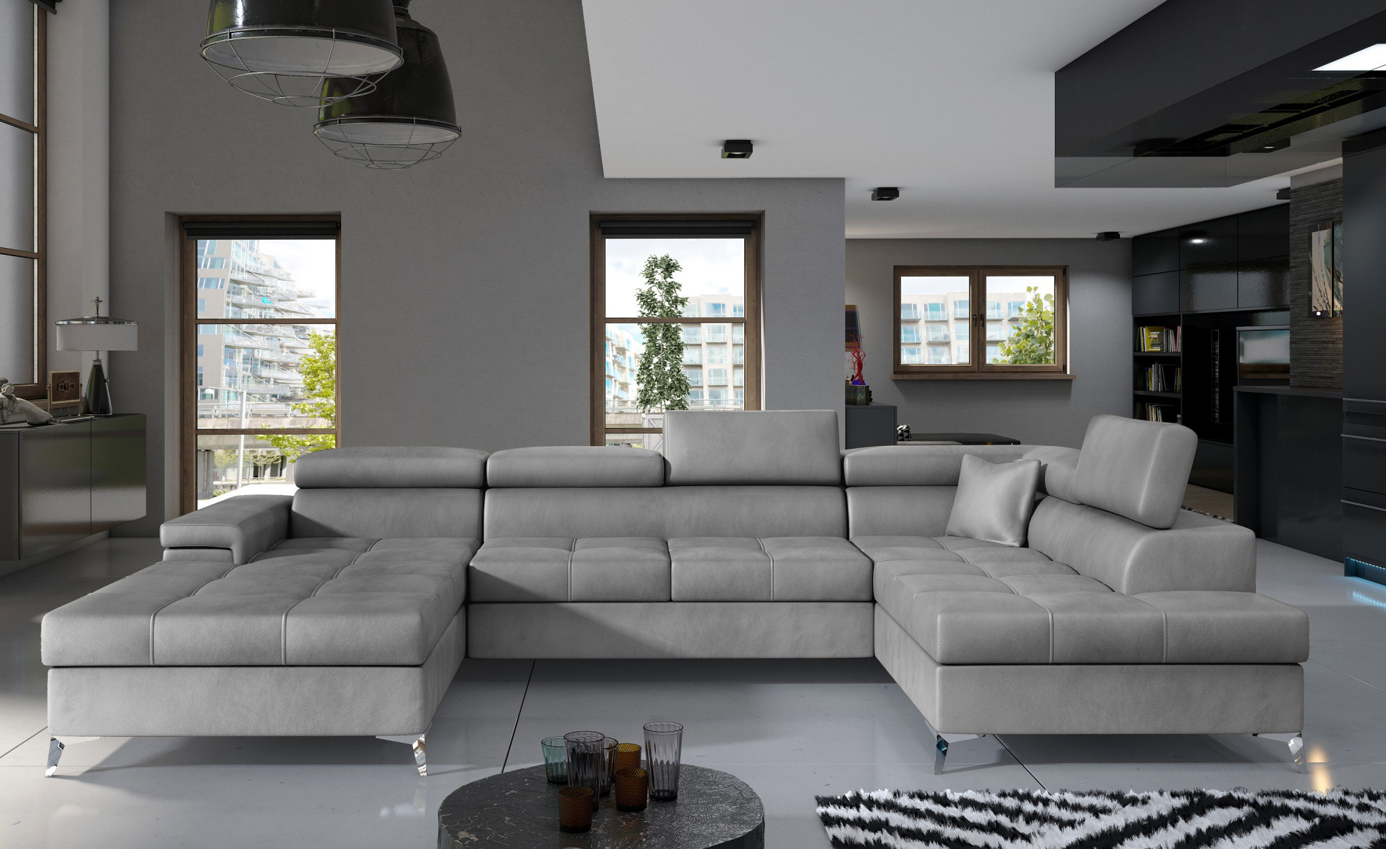Eduardo je originálna vkusná a mimoriadne mäkká rohová pohovka, ktorá prináša do interiéru, v ktorom je umiestnená, závan sviežosti a luxusu. Nábytok s rozmermi 345 x 202 x 90 cm zaručuje maximálne pohodlie pre denný odpočinok aj relaxáciu v noci, pretože je vybavený funkciou spania s plochou určenou na tento účel - 125 x 265 cm. Delfíní mechanizmus sa tu tiež dostáva do popredia, ktorý intuitívne a bez námahy rozkladá nábytok do požadovanej polohy. Medzi ďalšie výhody môžeme zahrnúť priestranný úložný priestor na lôžkoviny umiestnený v otomane, rovnako ako pohodlné sedadlo vyrobené z HR peny, ktorá sa najlepšie prispôsobí nášmu telu počas spánku. Medzi ďalšie jedinečné vlastnosti rohovej pohovky patria: nastaviteľné opierky hlavy, široké podrúčky a vysoké kovové nohy. Rohová pohovka Eduardo je k dispozícii v celej rade látok zo vzorkovníka Eltap, čo vám umožňuje zariadiť váš interiér veľmi individuálnym spôsobom.