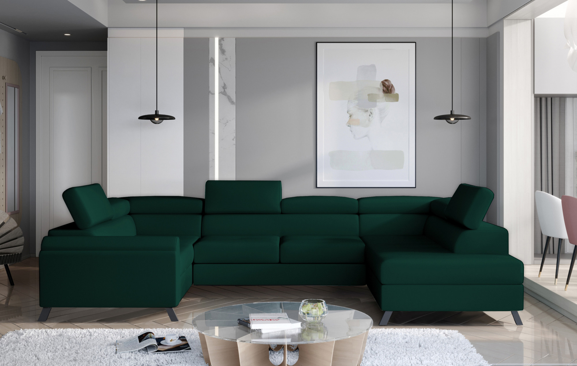 Escada je jednoduchá, ale elegantná a veľmi štýlová rohová pohovka s rozmermi 330 x 190 x 98 cm a exkluzívnym štýlom. Naša rohová pohovka je multifunkčný kus nábytku, pretože okrem toho, že je priestrannou pohovkou na oddych počas dňa, môže slúžiť aj ako miesto na regeneráciu a relaxáciu v noci. Vďaka mechanizmu typu delfín môžeme dennú posteľ rýchlo a jednoducho premeniť na pohodlné lôžko s rozmermi 110 x 250 cm. Návrat k forme dennej postele nám pomôže vrátiť sa k priestrannej nádobe na lôžkoviny, ktorá sa nachádza v otomane. Výnimočný komfort a pohodlie zabezpečuje 45 cm vysoké sedadlo z jedinečných pien T30 a HR, ktoré zvyšujú zážitok z maximálneho pohodlia. Okrem toho zvyšujú pružnosť a odolnosť pohovky a zabraňujú vzniku nevzhľadných otlakov v jej štruktúre.Pri výbere Escada ako rohovej pohovky do obývačky - stojí za zmienku aj: nastaviteľné opierky hlavy, elegantné kovové nohy. Escada je rohová pohovka, ktorá sa určite stane ozdobou každej miestnosti, v ktorej sa nachádza.