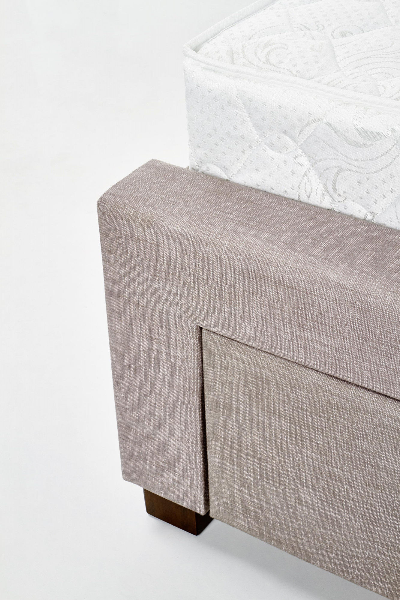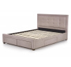 rozmer: 164/215/111 cm, posteľ so zásuvkami, Materiál: látka / masív, Farba: látka - béžová, drevo - orech