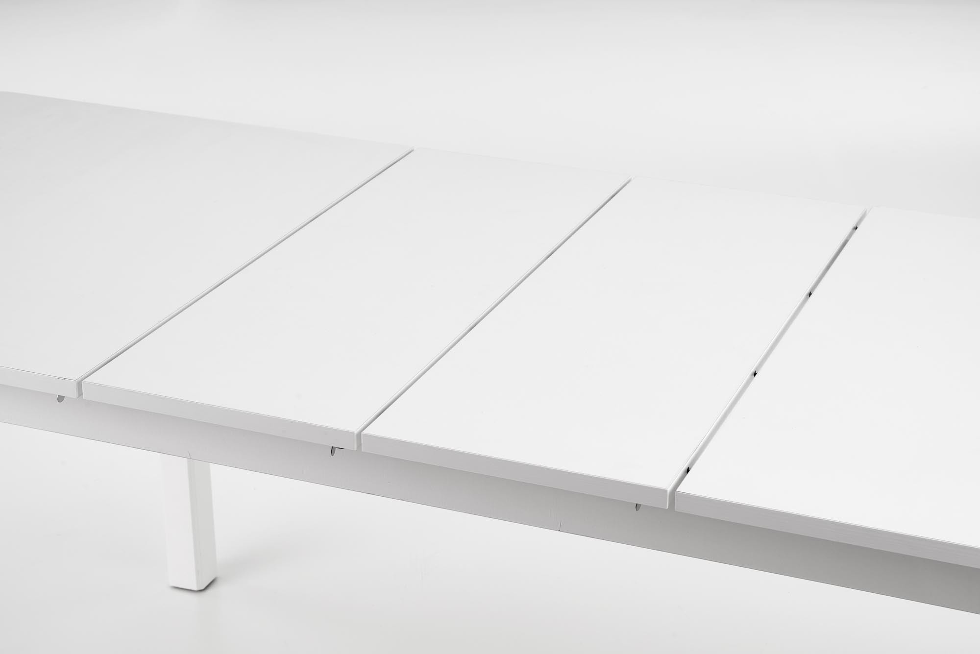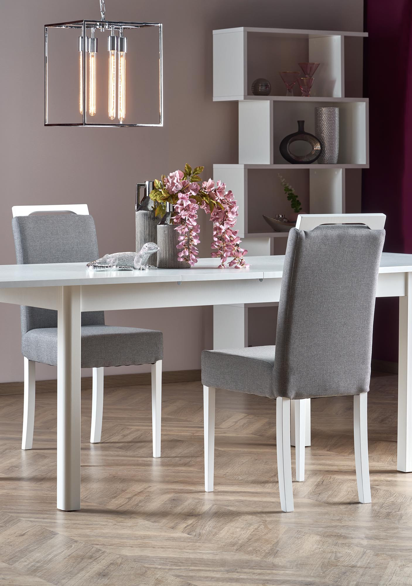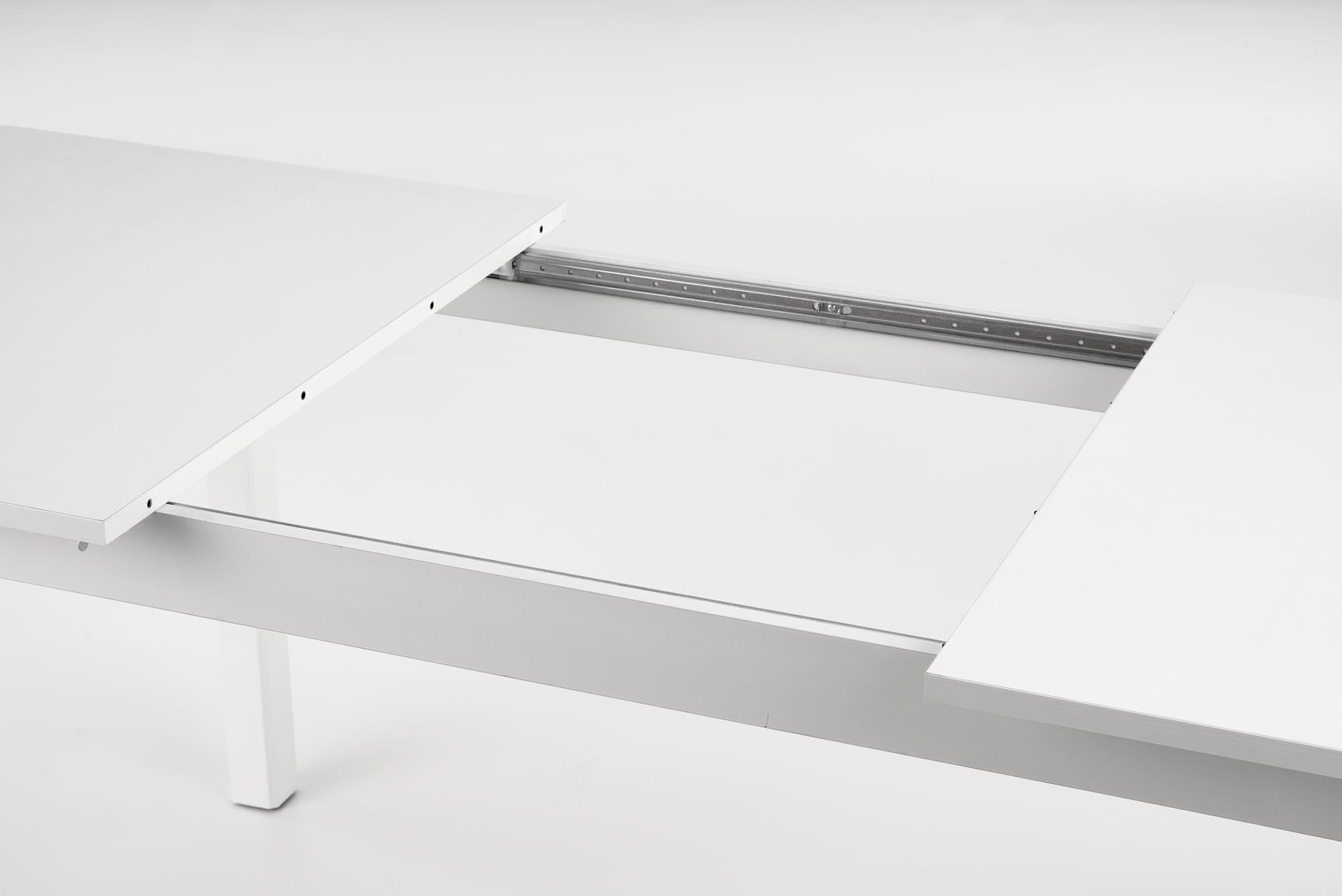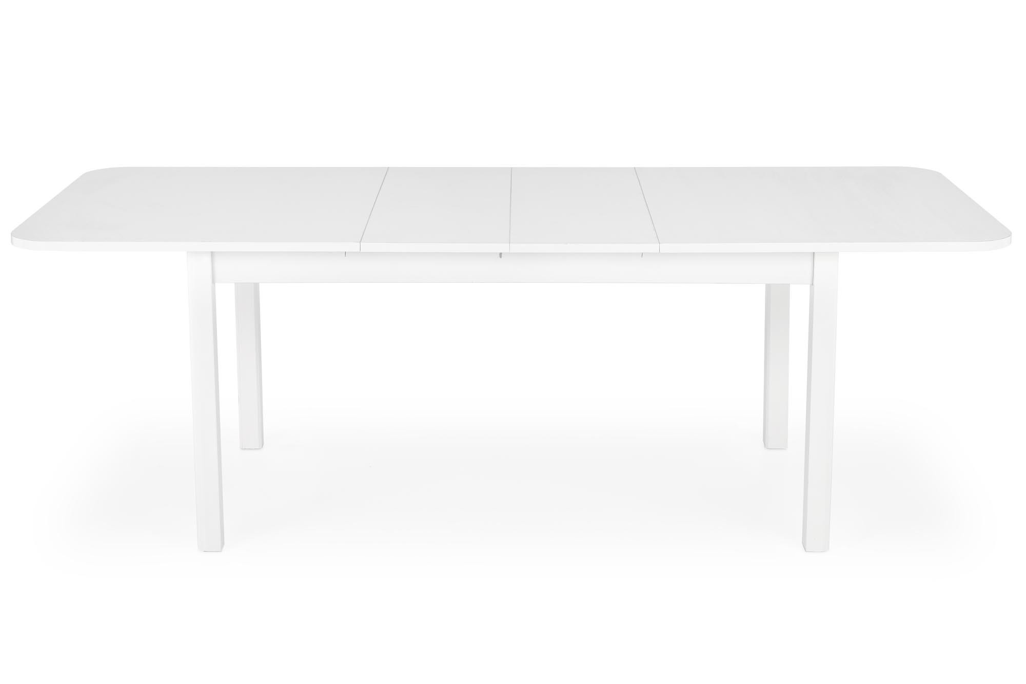 rozmery: 141-219/80/78 cm, rozkladací stôl, materiál: dyhovaná nábytková doska / dyhovaná MDF, farba: stolová doska - biela, nohy - biele