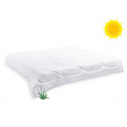 Obsahuje vysoko kvalitné dutinkové komorové pojené plne protialergické duté vlákno, ktoré je určené špeciálne pre výrobu týchto prikrývok. Vďaka tejto nite sa prikrývka obopne okolo tela spiaceho človeka a prispeje k pohodlnému spánku.Povrchovým materiálom je 100% polyester - mikrovlákno s výťažkami z rastliny Aloe Vera. Aloe Vera priaznivo pôsobí na ľudskú pokožku, má schopnosť zmierňovať bolesti kĺbov a svalov. Počas používania postupne uvoľňuje extrakty zo svojich vlákien, ktoré majú výrazný antibakteriálny efekt, a preto bezpečne zaručia hubenie baktérií a roztočov. Prispieva k uvoľneniu tela, relaxácii a ničím nerušenému pokojnému spánku. Prikrývka je vhodná pre alergikov a astmatikov.Prikrývky Aloe Vera sa dajú prať v automatickej práčke do 95°C a potom sušiť v bubnovej sušičke na zníženú teplotu.